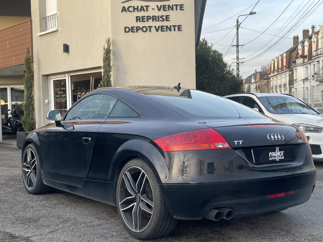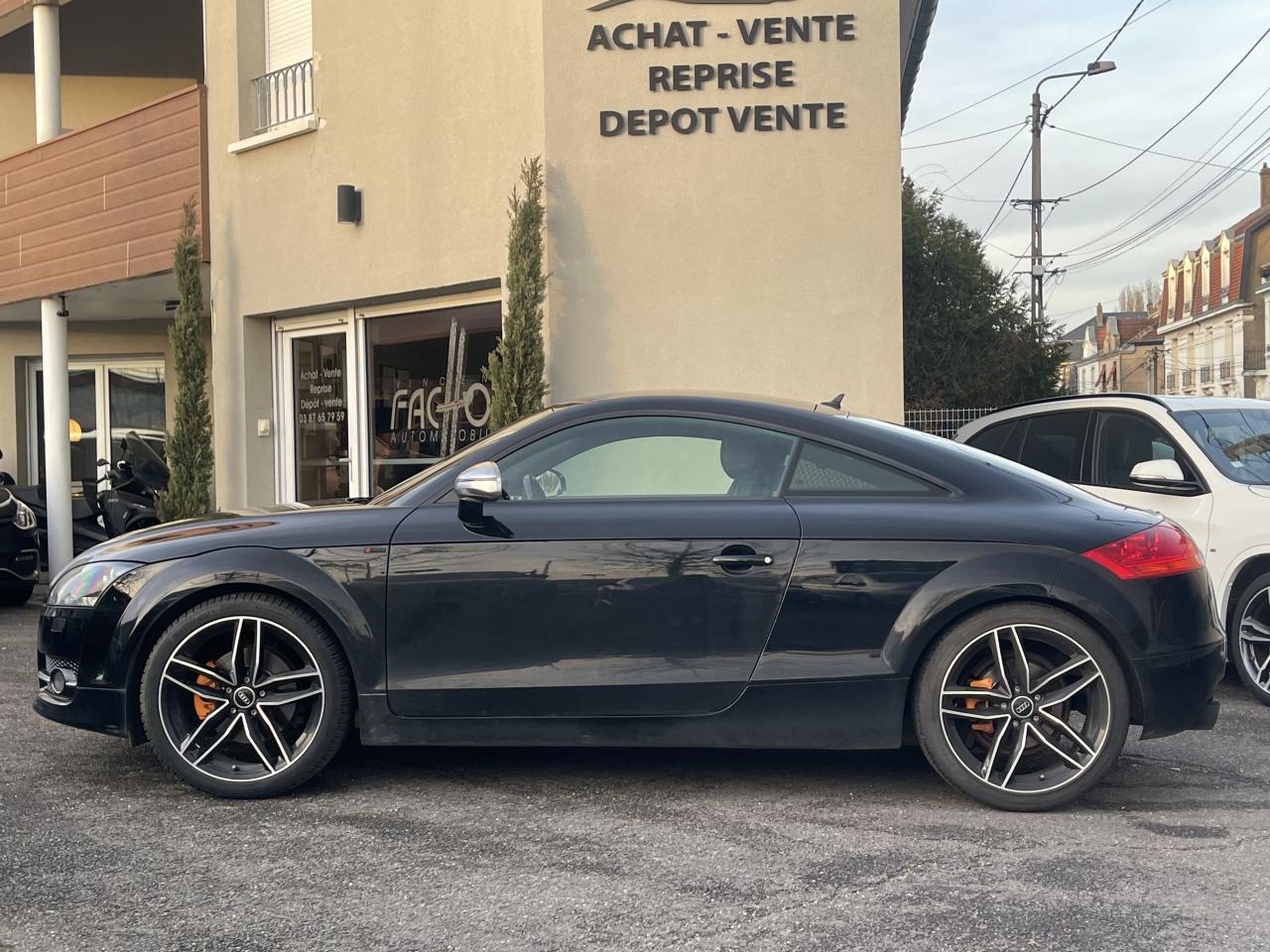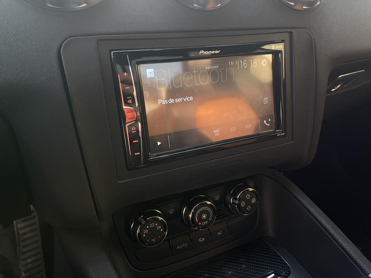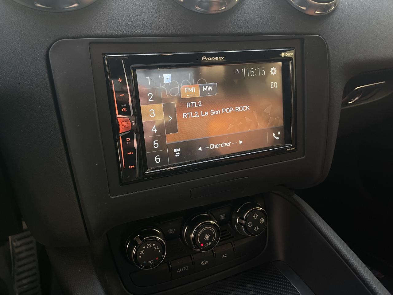3ème feu stop arrièreABS (Antiblocage de roues)Airbags grand volume pour le conducteur et le passagerAntipatinage ASR : empêche le patinage des roues motrices ; assure une motricité optimaleApplications décoratives Gris micrométallique sur la console centrale et la boîte à gantsAppuie-tête à l'avant, réglables en hauteurArceaux de sécurité avec partie arrière style aluminium disposés derrière les appuie-tête constituant une cellule protectrice en cas de tonneauAudi Backguard, en cas de collision arrière, la conception du siège permet l'amortissement du haut du corps et le soutien plus précoce de la têteAvertisseur ''2 tons''Banquette AR rabattable 50/50Boîte à gants côté passager, verrouillable, avec éclairage et étui à lunettesCache-bagage coulissant et/ou amovibleCache-bagages amovibleCapote manuelle triple épaisseur avec couvre-capote manuelCarrosserie à architecture Audi Space Frame (ASF)Carrosserie : architecture Audi Space Frame ASF. Association innovante d'aluminium et d'acier assurant une plus grande rigidité et davantage de dynamisme, de stabilité et de sécuritéCatadioptres de portières passifs, protection contre les véhicules venant de l'arrière en cas de portière ouverteCeintures de sécurité trois points à enrouleur à toutes les placesCeintures de sécurité trois points à toutes les places, prétensionneur et limiteur de force pour sièges avantCendrier et allume-cigares sur la console centraleChâssis “Sport”Châssis Sport S lineClimatisation automatique style TT, sans CFC, avec réglage asservi à la position du soleilColonne de direction de sécuritéContrôle de la pression des pneumatiquesContrôle de pression des pneus : vérifie durant la marche la pression de chacune des rouesDirection assistée électromécanique, assistance asservie à la vitesseEcrous antivolEDS (blocage électronique de différentiel)Essuie-glace deux vitesses avec commande automatiqueFeux antibrouillard arrièreFeux arrière en verre transparent rouge, avec feux de recul blancs, style tridimensionnelIndicateur de température extérieureIndicateur de température extérieure dans le système d'information du conducteurInscription TT à l'arrière et sur le compte-toursInscription TT avec éclairage réglableInscriptions S line sur ailes avant et seuils de portesInstrumentation spécifique TTJantes 16" en aluminium coulé style 10 rayons, pneus 225/55 R 16 WJantes Audi exclusive en aluminium coulé style 5 branches, 9 J x 18”, avec pneus 245/40 R 18Levier de vitesse raccourciLevier de vitesse raccourci pour boîte mécanique uniquementLunette arrière dégivrante avec minuterie et antenne de vitre intégréeMiroirs de courtoisie éclairés conducteur et passagerMoquette et tapis complémentaires avant assortis à la couleur de l'habitacleOeilletons de fixation dans le coffreOeilletons de fixation dans le coffre, 4 oeilletons de fixation du changementOrdinateur de bord avec contrôle autocheck, indicateur de vitesse numérique, fréquence radio, deux seuils de vitesse programmablesOutillage de bord dans le coffrePack Aluminium étendu pour diffuseurs d'airPack aluminium pour diffuseurs d'airPare-chocs enrobés de synthétique dans la couleur de la carrosseriePlafonnier à temporisation avec contacteur sur toutes les portières ; éclairage côté passager avant et dans le coffrePommeau de levier de vitesses en cuir avec partie style aluminiumPommeau de levier de vitesses en cuir perforéPommeau et soufflet de levier de vitesse en cuir, anneau décoratif style aluminiumPorte-boissons, double dans la console centraleProgramme de stabilité électronique (ESP)Projecteurs antibrouillards en verre transparent, projecteurs halogènes intégrés dans le bouclier AVProjecteurs principaux ellipsoïdaux sous verre transparent, style tridimensionnel, avec réglage électrique du site des phares et commande de feu de stationnementProtection anticollision latérale dans les portières, constituée de profilés d'aluminium rigidesProtection antidémarrage électroniqueProtection latérale anticollisionRégulateur de vitesseRétroviseur intérieur jour et nuitRétroviseurs extérieurs électriquement, asphérique à gauche, convexe à droite, boîtiers laqués dans la couleur de carrosserie, avec clignotants latéraux à diodes intégrésRétroviseurs extérieurs réglables électriquement, asphérique à gauche, convexe à droite, boîtiers laqués dans la couleur de carrosserie, avec clignotants latéraux à diodes intégrésRadio Chorus + 4 haut-parleurs à l'avant, puissance totale 40 WRadio Chorus + 4 HP (2 AV/AR), puissance totale 40 WRadio Chorus avec lecteur CDSellerie cuir Nappa fin avec logo S line sur les dossiers de siègesSellerie cuir ValettaSeuils de portes avec inserts d'aluminiumSièges arrière : 2 places à l'arrière, homologuées pour personne de 1,50 m maximum ou enfant de 12 ans et 1,25 m maximum sur siège enfantSièges avant Sport avec bourrelets latéraux enveloppant pour un meilleur maintien dans les viragesSignal sonore pour oubli d'extinction des feuxSignal sonore pour oubli d'extinction des feux ; éclairage des instruments réglable en continuSortie d'échappement double à gaucheSpoiler AR escamotable asservi à la vitesseSpoiler arrière escamotable asservi à la vitesse pour un meilleur appui aérodynamiqueSystème antiblocage ABS avec répartiteur électronique de freinage EBV et assistant hydraulique de freinage d'urgenceTélécommande à fréquence radio pour le verrouillage centralisé, intégrée à la clé du véhiculeTémoins de contrôle pour airbagsTableau de bord capitonnéTire Mobility System : compresseur et produit de colmatage en cas de crevaisonTrappe à carburant en aluminium avec estampillage TTTriangle de pré-signalisationTrousse de secoursVérin pneumatique de capot et de coffreVitres athermiques teintées vertes, pare-brise en verre feuilletéVitres avant et arrière électriques, avec protection antipincement,
