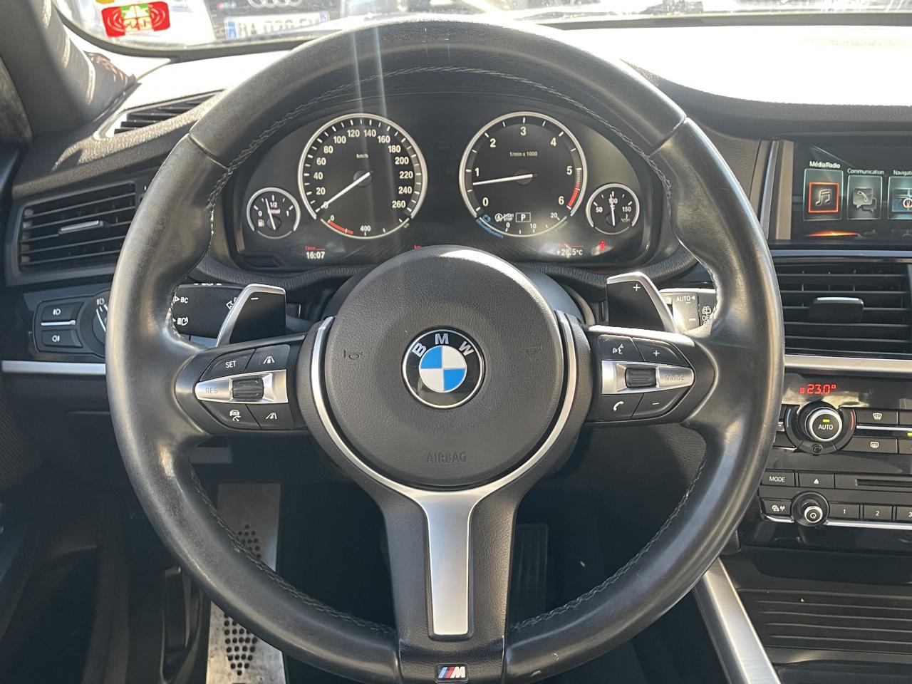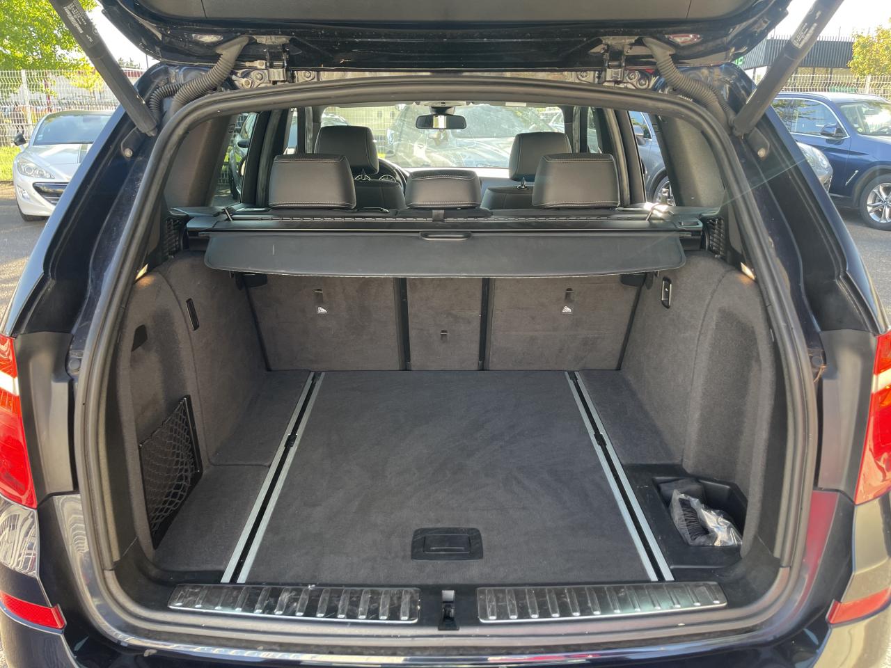 ABS (Antiblocage de roues)Accoudoir central avant et arrièreAffichage BMW EfficientDynamics dans le cadran d'instrumentationAide au démarrage en côte, pré-charge du circuit de freinage au lever de pied, séchage des disques de freins et compensation du fadingAirbags conducteur et passagerAirbags de tête avant et arrière avec voile de protection contre les débris de verreAirbags latéraux avantAnneaux d'arrimage dans le coffreAntenne de toit « aileron de requin »Anti-démarrage électroniqueAppel d'Urgence IntelligentAppuie-tête actifs à l'avant, réglables en hauteur et en inclinaisonAssistance au freinage d'urgenceAutoradio BMW Professional CD, 6 haut-parleurs, prise AUX-IN, port audio USB et streaming audio Bluetooth (avec fonction "Music Search")Badge M situé sur les ailes avantBaguettes de seuil de portes sigléesBanquette arrière 3 places avec dossiers rabattables en trois parties (40/20/40)Barreaux de calandre couleur titaneBMW TwinPower TurboBoîte de vitesses automatique Sport à 8 rapports et palettes au volantCache-bagages amovible à enrouleurCapteur d'impact : déverrouillage du véhicule, allumage de l'éclairage de l'habitacle et activation des feux de détresseCarnet d'entretien électronique embarqué "BMW Service History"Ceintures de sécurité avec prétensionneur pyrotechnique et limiteur de tension à l'avantCiel de pavillon "Anthrazit "Clé radiocommandée avec insert bleu spécifiqueClés radiocommandées à mémorisation automatique des réglages "Personal Profile"Climatisation automatique 3 zone, avec aérateurs à l'arrièreCombiné d'instrumentation avec écran couleur d'informationCommande électrique du hayon (hauteur d'ouverture paramétrable)Construction allégée intelligenteContour de calandre chroméContrôle de freinage en courbe CBCContrôle de la TransmissionContrôle Dynamique de la Stabilité DSC+Contrôle Dynamique de Traction DTCDémarrage sans clé via le bouton de démarrage Start/Stop avec contour chroméDétecteur de pluie et allumage automatique des projecteursDeux porte-boissons occultables dans la console centrale avant et deux dans l'accoudoir central arrièreDirection DirectDrive à démultiplication variableDouble sortie d'échappement rondeEclairage de bienvenue et d'accompagnement "Follow-me-home"Eclairage plafonnier soft-on/soft-off et éclairage du coffreEcran d'information central couleur avec commande par "Controller" iDrive et 8 touches de raccourcis programmablesEcrous antivolFeux de stop dynamiquesFilet de séparation du coffre à bagagesFiltre à particulesFixations Isofix aux places latérales arrièreFonction d'arrêt et de redémarrage automatique du moteurFrein de parking électromécanique avec fonction "Automatic Hold"Freins à disques ventilés à l'avant et à l'arrièreIndicateur de maintenance CBS tenant compte des conditions de conduiteInserts décoratifs en aluminium brosséInterface Bluetooth pour téléphone portable (mains-libres)Jantes en alliage léger 18'' style 368 M à rayons en étoileKit aérodynamique M avec pare-chocs spécifiques, jupes latérales et passages de roues couleur carrosserieKit EclairageKit rangementLave-pharesMesure individuelle de pression des pneumatiquesMiroirs de courtoisie éclairés intégrés aux pare-soleilNavigation multimédia BusinessNotice d'utilisation intégréeOrdinateur de bord avec Check-Control et indicateur de température extérieurePack Advanced Full LEDPare-chocs auto-régénérants jusqu'à 4 km/h avec éléments déformables jusqu'à 15 km/hPneumatiques RSC permettant le roulage à platPrises 12 V (4) : console centrale avant, console centrale arrière, accoudoir central avant et coffreProjecteurs bi-xénonProtection contre les erreurs de ravitaillementRadars de stationnement avant et arrière PDCRails de toit accolés au pavillonRails de toit Shadow Line brillantRappels de clignotants à LED intégrés aux rétroviseurs extérieursRégulateur de vitesse avec fonction freinage pour maintenir la vitesse en descenteRespect de la Norme anti-pollution EU6Rétroviseur intérieur électrochromeRétroviseurs extérieurs à réglages électriques et dégivrants, avec miroir asphérique côté conducteurRétroviseurs extérieurs électrochromes rabattables électriquementRétroviseurs extérieurs et buses de lave-glace chauffantsSélecteur de mode de conduite - 3 modes : "ECO PRO", "Confort" et "Sport"Sellerie cuir NevadaServices Après-Vente connectés BMW TeleServicesSeuils de porte chromés M et repose-pied conducteur MShadow Line brillantSièges Advanced à l'avantSuspension DirectDriveSystème de contrôle de la descente (HDC)Système de récupération de l'énergie au freinageTapis de sol en veloursTechnologie 4 roues motrices intelligente xDriveTouches multifonctions sur le volantTrain arrière multibrasTrain avant à double articulationTriangle de présignalisation avec kit de premiers secoursTroisième feu stop à LEDVerrouillage centralisé avec télécommandeVitrage teinté pour réduire l'échauffement dû à l'ensoleillementVitres avant et arrière électriques à impulsion avec système ant-ipincementVolant M gainé cuirVolant réglable en hauteur et en profondeur