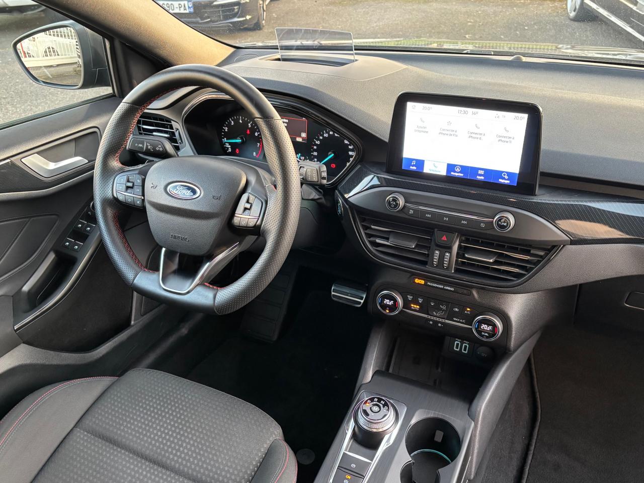 3 appuie-tête arrièreAide au démarrage en côteAide au maintien dans la file (LKA)Aide au stationnement avant/arrièreAirbags frontauxAirbags latéraux et rideauxAlerte d'oubli de ceintures avant/arrièreAllumage automatique des projecteursAnneaux de fixation dans le coffreBadges latéraux ST-LineBanquette arrière rabattable 60/40 avec fonction Easy FoldBarres de toit noiresCache-bagagesCaméra de recul grand angleCiel de toit noirConsole centrale avec accoudoir central et porte gobeletsContrôle de pression des pneus ( TPMS )Contrôle de stabilité de la remorque (TSM)Contrôle dynamique de stabilité (ESP)DAB (Digital Audio Broadcast)Double sortie d'échappement sportE-Shifter - Sélecteur de vitesse rotatifEntourage des feux NoirEntourage des phares antibrouillard noir ST LineFeux antibrouillard à LED avec éclairage d'angleFeux arrière halogèneFeux de jour à LEDFixations Isofix pour siège enfantFordPass Connect Modem embarqué - Abonnement gratuit pendant 10 ansFrein de parking électriqueFreinage automatique post-collisionGrille de calandre noire ST-LineJantes alliage 17" - 5x2 branchesJoncs de vitres latérales noirsJupes latérales sport ST Line couleur carrosserieKit carrosserie ST-LineKit de réparationLampe de lecture avant et arrière à LEDLimiteur de vitesse intelligentLumière d'ambiance à LEDOrdinateur de bord couleur 4,2"Pack ConfortPalettes au volantPare-brise acoustiquePare-chocs avant et arrière couleur carrosseriePeinture non métallisée Rouge RacingPhares avant avec réflecteurs LEDPlancher de coffre modulablePoignées de portes couleur carrosseriePrise 12V dans le coffreRégulateur de vitesseRétroviseurs extérieurs électriques et chauffants couleur carrosserieRétroviseurs rabattables électriquementSélecteur de mode de conduite (ECO / NORMAL / SPORT)Sellerie tissu spécifique ST-Line avec surpiqûre rougeSiège conducteur réglable en hauteur avec réglage lombaireSuspension sportSystème antiblocage de freins (ABS)Système de prévention de collisions avec détection des piétons et cyclistesSystème Multimédia Ford SYNC 3 avec navigation, commande vocale et écran tactile 8"Système MyKey Génération 2Tapis de sol avantTrappe à carburant Ford Easy-FuelVerrouillage centralisé à distanceVitres avant et arrière électriquesVolant à méplat