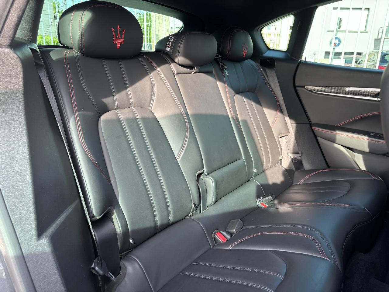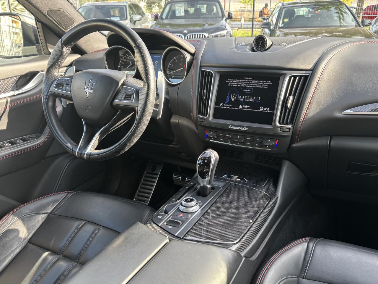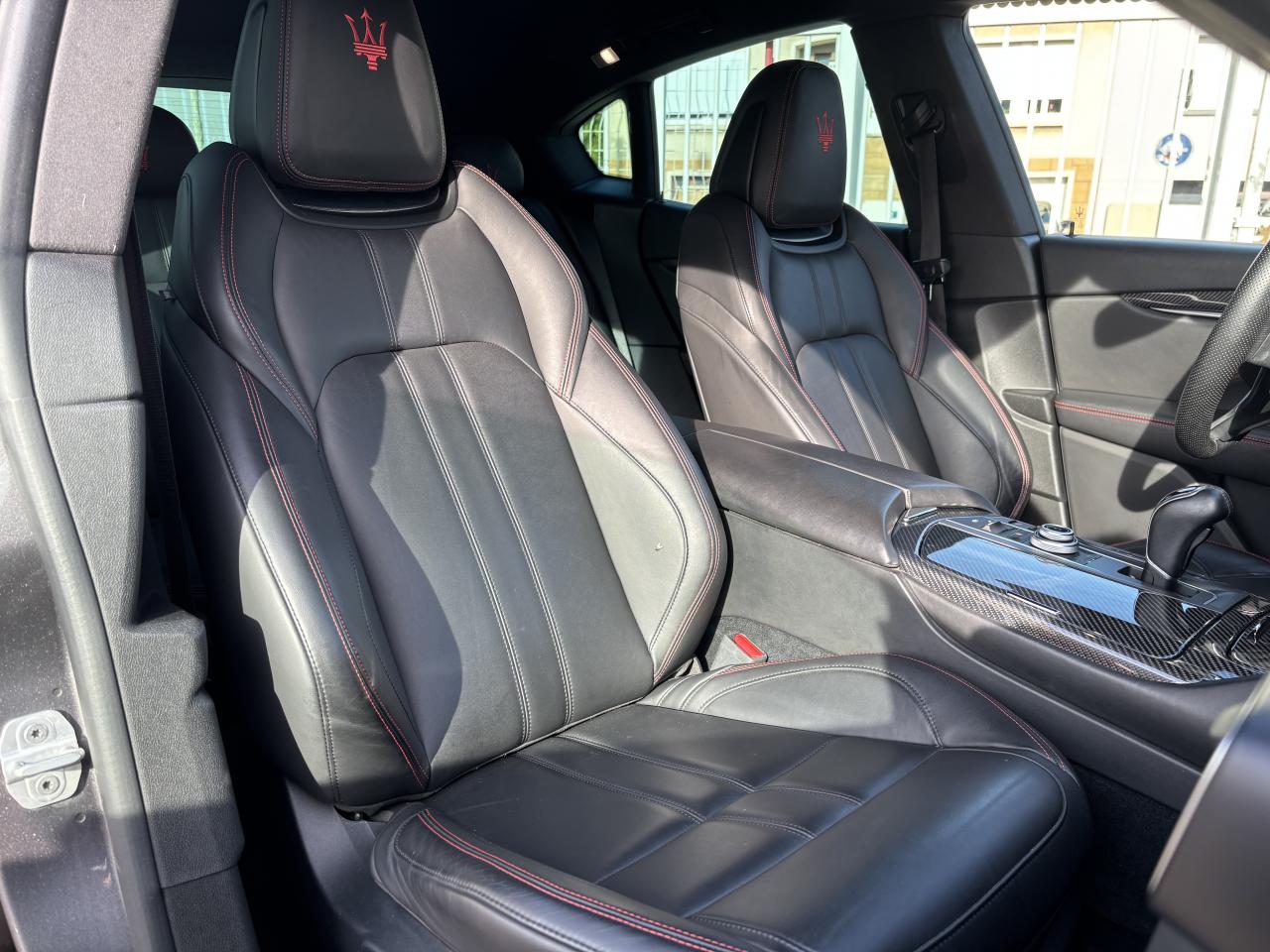 8 haut-parleursABS, EBD (répartiteur de freinage) et NBAS (amplificateur de freinage)Accoudoir central AV avec rangementAide au démarrage en côteAirbag conducteurAirbag passagerAirbag passager déconnectableAirbags latéraux avantAirbags rideauxAnti-démarrage électroniqueAppui-têtes conducteur et passager réglables en hauteurAppuie-tête actifs à l'avantAssistance au freinage d'urgenceBacs de portes avantBacs de rangement dans les portes arrièreBanquette AR rabattableBanquette arrière 3 placesBanquette arrière 60/40Becquet arrièreBoîte à gants éclairée et réfrigérableBoucliers avant et arrière couleur caisseCalandre chroméeCapteur de pluieCapteur de qualité de l'airCeintures de sécurité avant ajustable en hauteurChauffage auxiliaireCiel de pavillon en tissuClimatisation automatique bi-zoneCommande de régulation du comportement dynamiqueCommandes audio au volantContrôle de couple en courbe (CTC)Contrôle de pression des pneus ( TPMS )Contrôle de tractionContrôle électronique de trajectoire (ESP)Démarrage sans cléDétecteur de luminositéDétecteur de sous-gonflage indirectDifférentiel à glissement limitéDirection assistée asservie à la vitesseEchappement double sortieEcran tactileEtriers de freins noirsFermeture à distance du coffreFermeture assistée électrique du coffreFeux arrière à LEDFeux de jour à LEDFeux de route automatiquesFilets de coffreFixations ISOFIX aux places arrières pour sièges enfants (x2)Fonction d'arrêt et de redémarrage automatique du moteurFrein de stationnement électroniqueInterface médiaIntérieur cuirJantes 19" ZefiroKit fumeurKit mains-libres BluetoothLampe de coffreLampes de lecture à l'avantLave-pharesLecteur CDLecteur de carte SDLecteur DVDLimiteur de vitesseLunette AR dégivranteMode EcoMTC: Maserati Touch Control - Ecran tactile de 8,4"Ordinateur de bordOuverture des vitres séquentiellePare-soleil avec miroir de courtoisie conducteur éclairéPare-soleil avec miroir de courtoisie passager éclairéPhares bi-xénonPorte-gobelets arrièrePorte-gobelets avantPréparation ISOFIXPrise 12VPrise JackPrise USBProjecteurs antibrouillardRadioRadio Numérique DABRégulateur de vitesseRétroviseurs intérieur et extérieurs électrochromesServices connectésSièges avant électriques 6 positionsSortie d'échappement chroméeSuspension adaptativeSuspension pneumatiqueSystème d'accès sans cléSystème d'assistance à la descente (DAC)Système d'éclairage intelligentTablette cache-bagagesTapis en veloursTempérature extérieureTrappe à skis avec accoudoir central ARVerrouillage centralisé à distanceVitres arrière électriquesVitres avant électriquesVolant cuirVolant réglable en hauteur et en profondeur