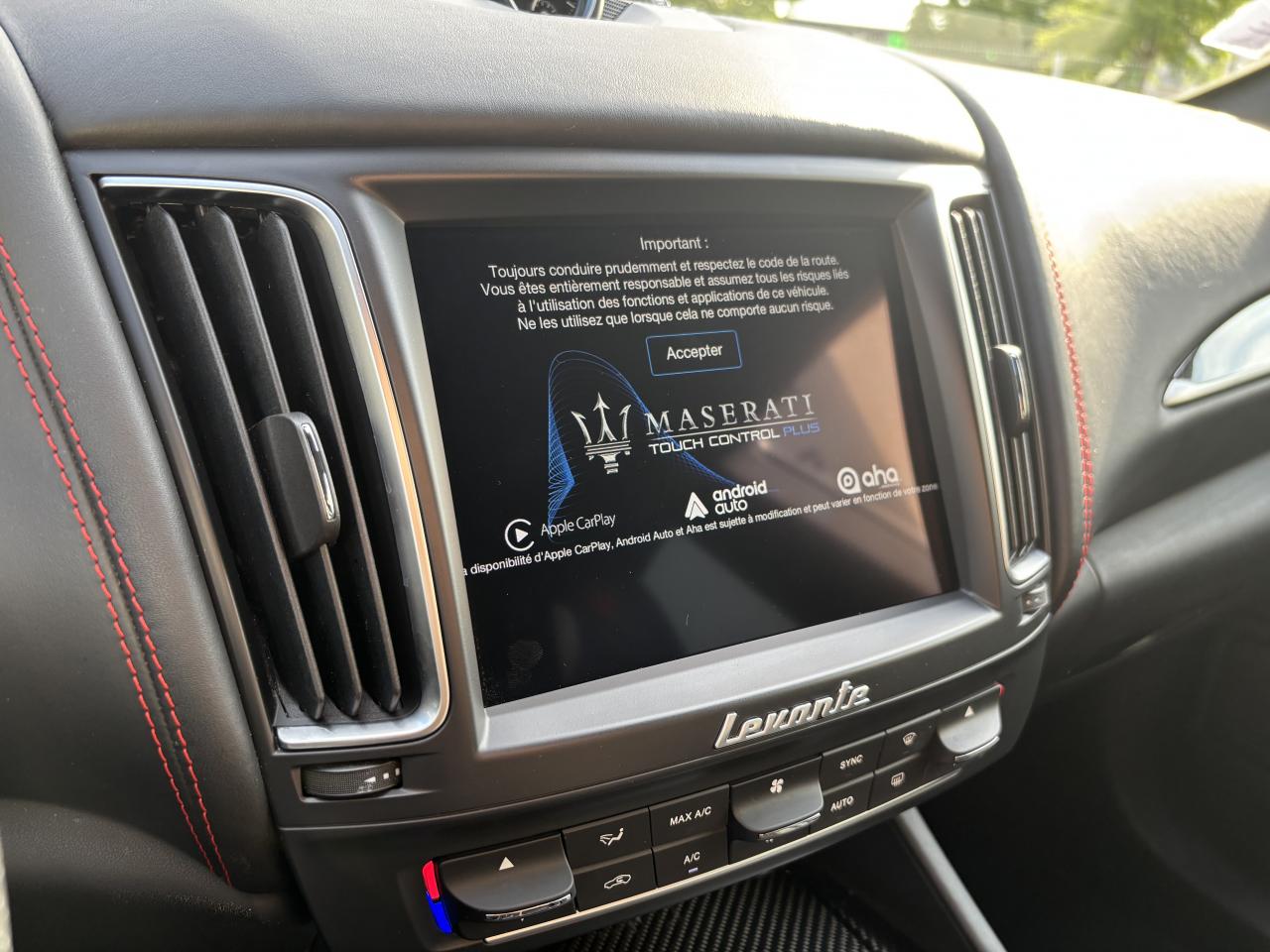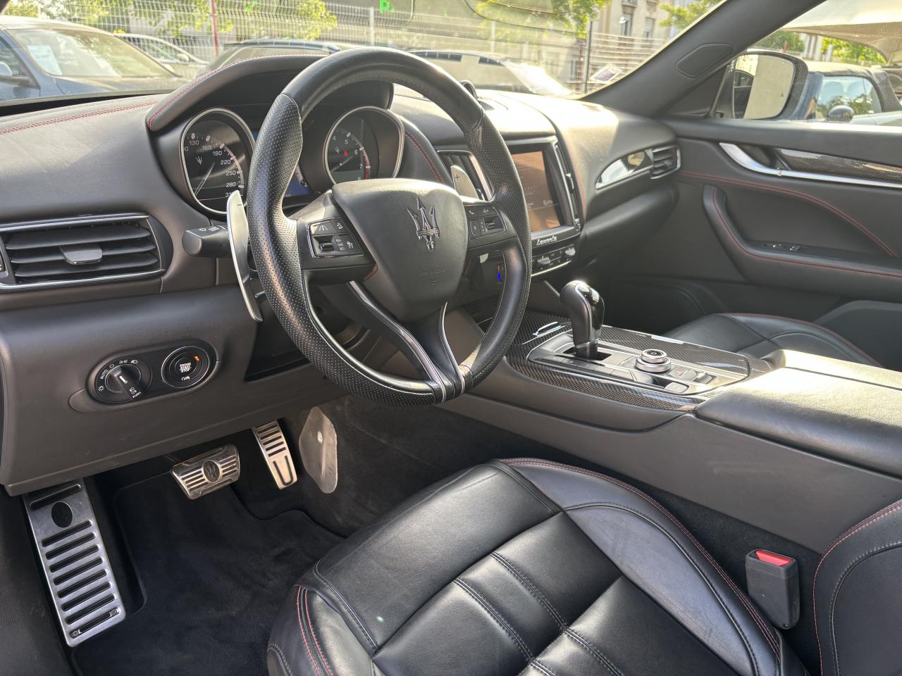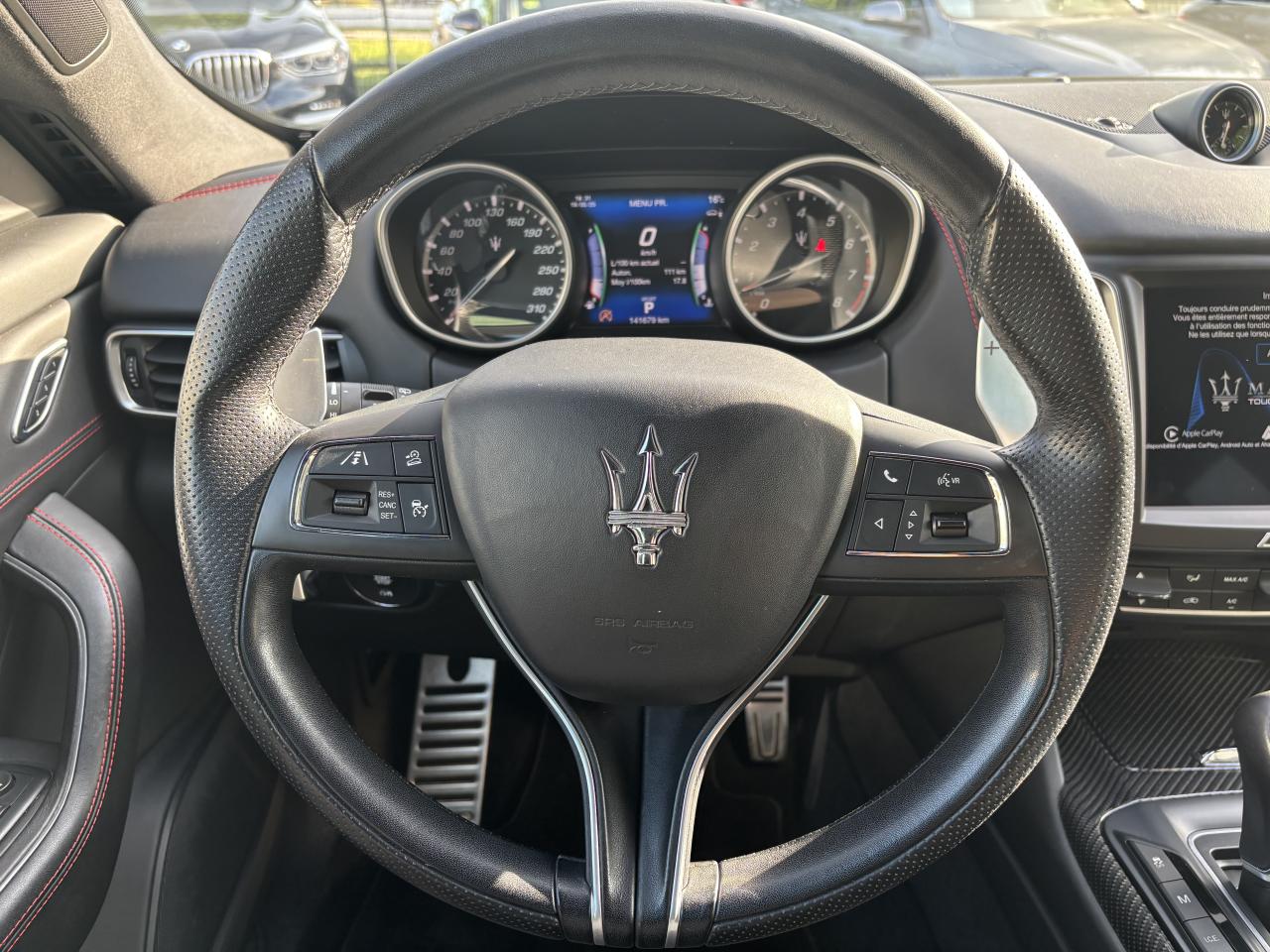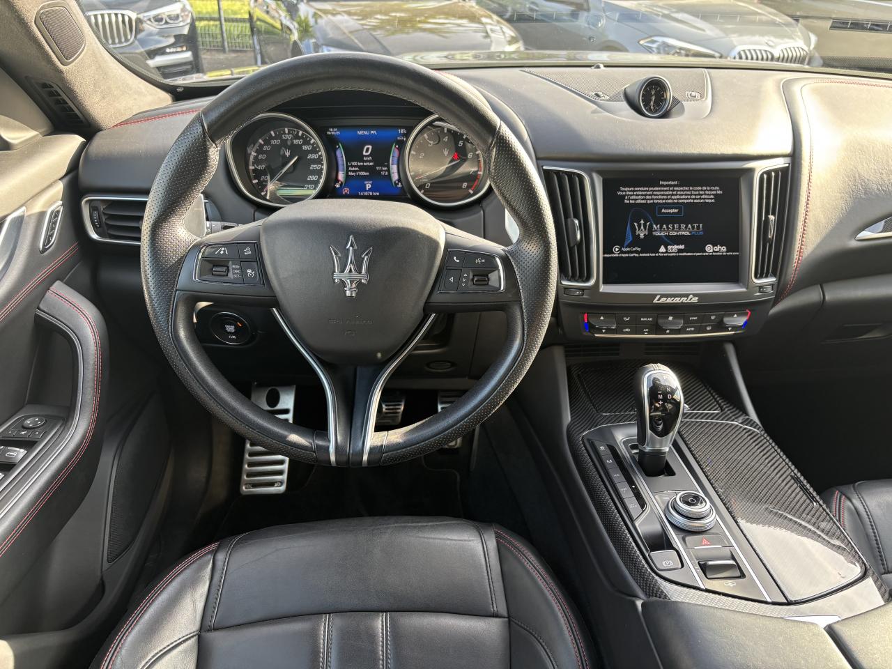 8 haut-parleursABS, EBD (répartiteur de freinage) et NBAS (amplificateur de freinage)Accoudoir central AV avec rangementAide au démarrage en côteAirbag conducteurAirbag passagerAirbag passager déconnectableAirbags latéraux avantAirbags rideauxAnti-démarrage électroniqueAppui-têtes conducteur et passager réglables en hauteurAppuie-tête actifs à l'avantAssistance au freinage d'urgenceBacs de portes avantBacs de rangement dans les portes arrièreBanquette AR rabattableBanquette arrière 3 placesBanquette arrière 60/40Becquet arrièreBoîte à gants éclairée et réfrigérableBoucliers avant et arrière couleur caisseCalandre chroméeCapteur de pluieCapteur de qualité de l'airCeintures de sécurité avant ajustable en hauteurChauffage auxiliaireCiel de pavillon en tissuClimatisation automatique bi-zoneCommande de régulation du comportement dynamiqueCommandes audio au volantContrôle de couple en courbe (CTC)Contrôle de pression des pneus ( TPMS )Contrôle de tractionContrôle électronique de trajectoire (ESP)Démarrage sans cléDétecteur de luminositéDétecteur de sous-gonflage indirectDifférentiel à glissement limitéDirection assistée asservie à la vitesseEchappement double sortieEcran tactileEtriers de freins noirsFermeture à distance du coffreFermeture assistée électrique du coffreFeux arrière à LEDFeux de jour à LEDFeux de route automatiquesFilets de coffreFixations ISOFIX aux places arrières pour sièges enfants (x2)Fonction d'arrêt et de redémarrage automatique du moteurFrein de stationnement électroniqueInterface médiaIntérieur cuirJantes 19" ZefiroKit fumeurKit mains-libres BluetoothLampe de coffreLampes de lecture à l'avantLave-pharesLecteur CDLecteur de carte SDLecteur DVDLimiteur de vitesseLunette AR dégivranteMode EcoMTC: Maserati Touch Control - Ecran tactile de 8,4"Ordinateur de bordOuverture des vitres séquentiellePare-soleil avec miroir de courtoisie conducteur éclairéPare-soleil avec miroir de courtoisie passager éclairéPhares bi-xénonPorte-gobelets arrièrePorte-gobelets avantPréparation ISOFIXPrise 12VPrise JackPrise USBProjecteurs antibrouillardRadioRadio Numérique DABRégulateur de vitesseRétroviseurs intérieur et extérieurs électrochromesServices connectésSièges avant électriques 6 positionsSortie d'échappement chroméeSuspension adaptativeSuspension pneumatiqueSystème d'accès sans cléSystème d'assistance à la descente (DAC)Système d'éclairage intelligentTablette cache-bagagesTapis en veloursTempérature extérieureTrappe à skis avec accoudoir central ARVerrouillage centralisé à distanceVitres arrière électriquesVitres avant électriquesVolant cuirVolant réglable en hauteur et en profondeur