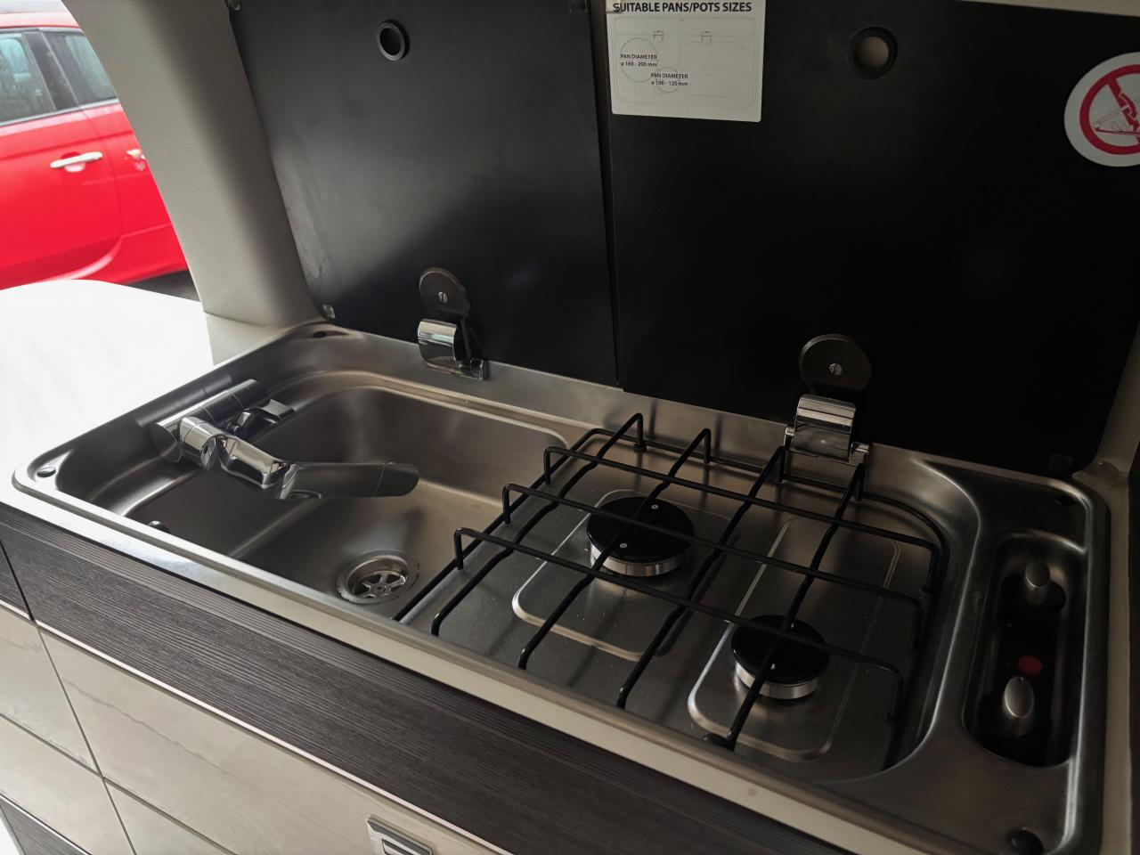 - Kitchenette complète : évier, réfrigérateur et plaques de cuisson