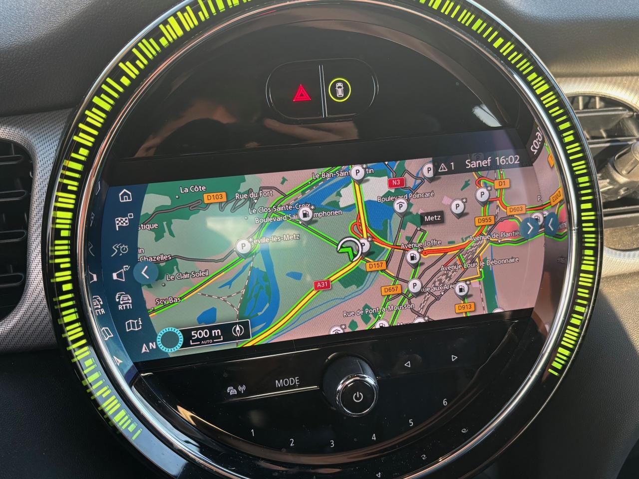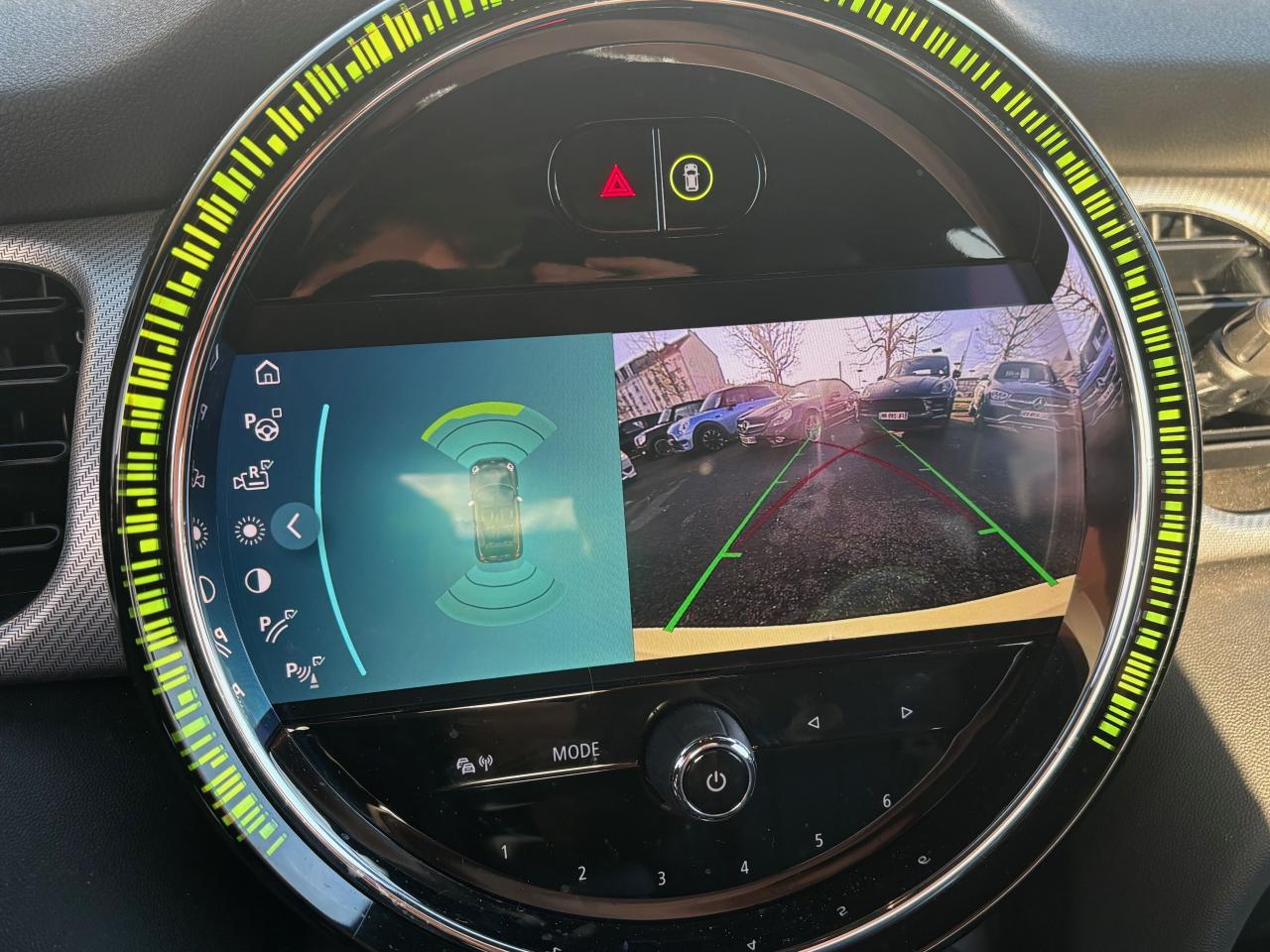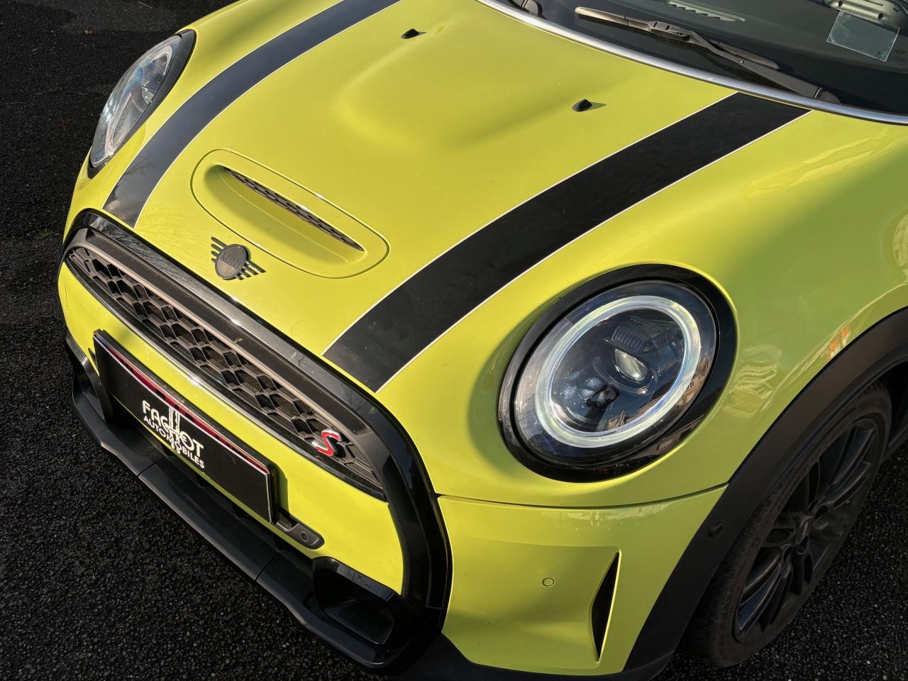 Caméra de recul ; Aide au stationnement avant/arrière et Park Assist ; Pack Connected Media (écran tactile 8,8") et Pack Connected Navigation (RTTI) ; Pack Safety (avertisseur de franchissement de ligne, feux de route automatiques, freinage d'urgence intelligent) ; Apple CarPlay ; Projecteurs Full LED ; Feux arrière à LED design Union Jack ; Jantes alliage 18" MINI Yours bi-ton avec pneus run-flat ; Sièges avant Sport cuir Lounge MINI Yours Carbon Black ; Climatisation automatique bi-zone ; Volant sport cuir Walknappa ; Régulateur de vitesse avec fonction freinage ; Anneau lumineux autour de l'écran central ; Insert Piano Black et éléments aluminium intérieurs ; Capot moteur actif, détection de pluie, allumage automatique, etc.