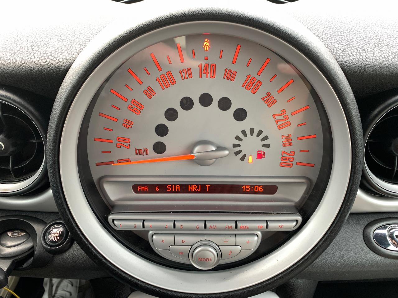 4 airbags, y compris protection tête/thorax à l'avantABS (Antiblocage de roues)Always Open TimerAnti-démarrage électronique EWS IIIArceau de sécurité intégré derrière les appuis-tête arrièreAutoradio MINI CD avec prise Aux-In et 6 haut-parleursBanquette arrière 2 places rabattable 50/50, verrouillable manuellementBarres de calandre chroméesBouton de démarrage “Start/Stop”Capote entièrement automatique avec fonction toit coulissantClimatisation manuelleContour chromé des projecteurs avant et des feux arrièreContrôle de freinage en courbe CBCContrôle dynamique de la stabilité DSCCricDeuxième clé radiocommandéeDirection à assistance électriqueEcrous antivolFixations ISOFIX aux places arrièreIndicateur de changement de rapportIndicateur de perte de pression des pneumatiques (RPA)Inserts décoratifs "Fine White Silver"Jantes en alliage léger 15'' design "5-Star Spooler"Lève-vitres et rétroviseurs extérieurs électriquesLunette arrière rigide avec dégivrage à extinction automatiqueMINI Mobility SystemPare-chocs avant et arrière dans la couleur de la carrosseriePartie inférieure du tableau de bord et accoudoirs de portes en plastique couleur Dark GreyPoignée de hayon chroméePoignées de portes chroméesPrise 12V entre les porte-gobelets avantRétroviseurs extérieurs couleur carrosserieSellerie tissu "Cosmos"Siège conducteur réglable en hauteurSortie d'échappement simple, droite et chroméeSystème d'accès aux places arrière Easy-EntrySystème d'aide au stationnement PDC arrièreSystème de chargement simplifié Easy-LoadSystème de récupération de l'énergie au freinageTriangle de présignalisation avec kit de premiers secoursVerrouillage centralisé des portes, du coffre et de la trappe à essenceVolant Cuir 2 branches réglable en hauteur et en profondeur