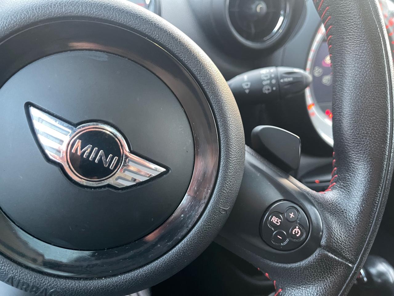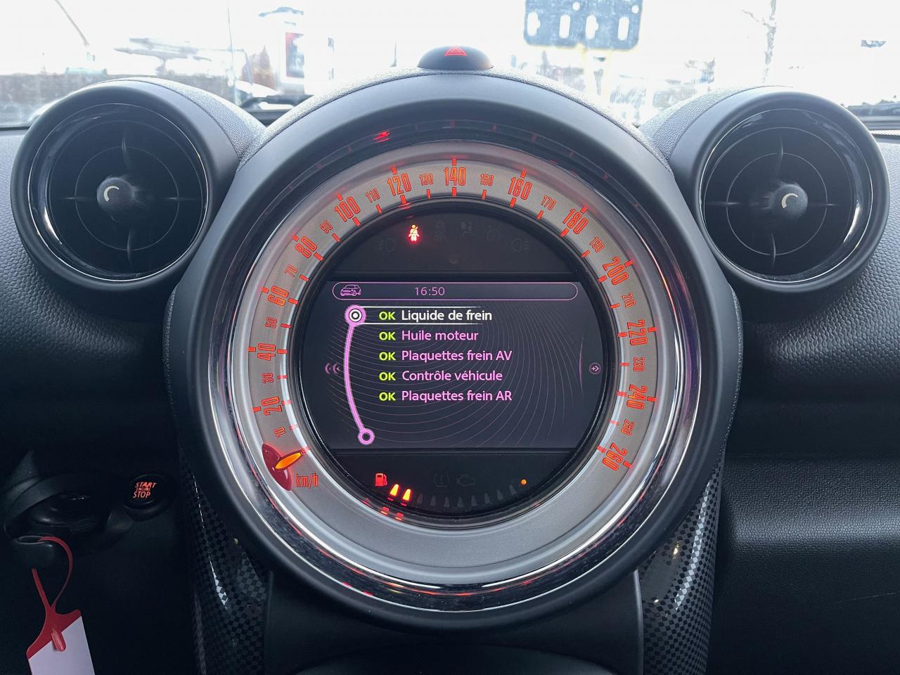 6 AirbagsABS (Antiblocage de roues)Autoradio MINI CD avec prise AUX-IN,5 haut-parleurs et compatibilité MP3Bagues décoratives Dark Grey autour du compteur de vitesse central, des aérateurs centraux et du soufflet de levier de vitessesBecquet de toit spécifique Cooper SBouton de démarrage “Start/Stop”Calandre au contour chromé avec grille façon “nid d'abeilles”Center Rail court incluant 2 éléments de séparationClimatisation automatique avec commande automatique de recyclage d'air d'habitacleContrôle de freinage en courbe CBCContrôle Dynamique de la Motricité DTCContrôle dynamique de la stabilité DSCDirection à assistance électriqueDouble sortie d'échappement chromée gauche/droiteEcrous antivolFixations Isofix aux places latérales arrièreIndicateur de perte de pression des pneumatiques (RPA)Jantes en alliage léger 17” design “5-Star Double Spoke”Lève-vitres électriques à l'avantOrdinateur de bord multifonctionOuïes latérales Dark Anthracite “S” avec répétiteurs de clignotants blancs intégrésPédalier et repose-pied avec inserts en acier inoxydablePare-chocs avant et arrière dans la couleur de la carrosseriePoignées de portes chroméesPrise 12V entre les porte-boissons avantProjecteurs antibrouillardProjecteurs avant et feux arrière au contour chroméRéglage en hauteur du siège conducteur et du siège passager avantRétroviseurs extérieurs à réglage électriqueSellerie tissu "Diagonal Track" Carbon BlackSièges arrières indépendants et rabattables avec center rail courtSièges avant sportSystème d'aide au stationnement PDC arrièreSystème de récupération de l'énergie au freinageToit et coques de rétroviseurs extérieurs dans la teinte de la carrosserie, blancs ou noirsTouches multifonctions avec régulateur de vitesse au volantTransmission intégrale ALL4Vitres teintées