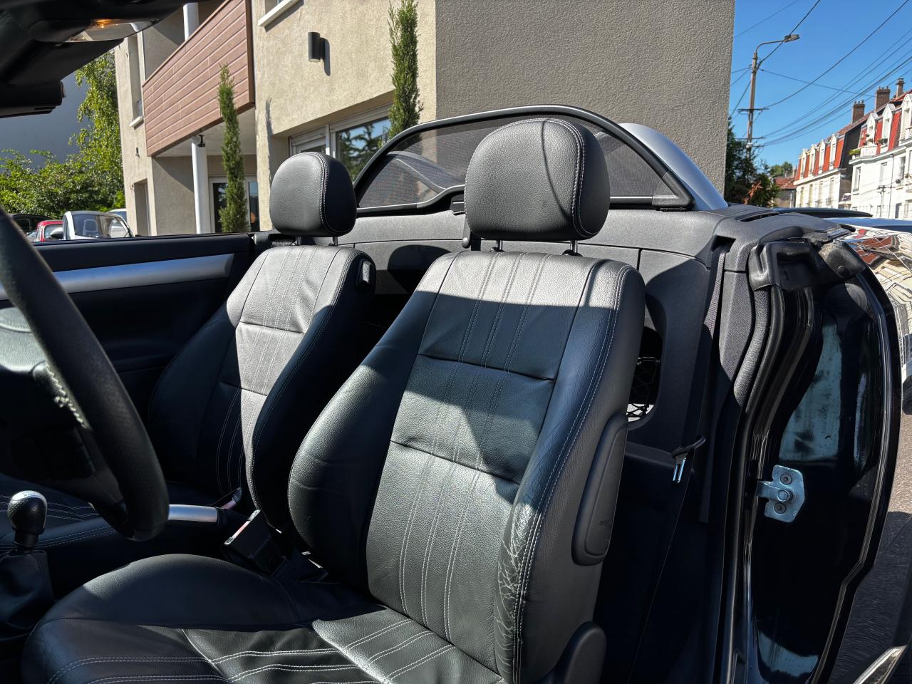 “Boomerangs” montants chromés mats reliant la console centrale au tunnel de transmission2 appuie-tête à l'arrière2 appuie-têtes réglables en hauteur3ème feu stop arrièreAirbags conducteur et passagerAirbags latéraux conducteur et passagerAirbags latéraux sur sièges avantAlarme sonore d'oubli d'extinction des feuxAllume-cigareAnti-démarrage SRA 7 clésAppuis-tête AV réglables en hauteurAssistance au freinage d'urgenceBaguette chromée insérée dans pare-chocs arrièreBarre de calandre chroméeBoîte à gants avec couvercleBoucliers couleur carrosserieCadrans à fond noirCalandre chroméeCeintures de sécurité avant avec prétensionneurs et limiteur d'effortCeintures de sécurité avec prétensionneurs à déclenchement pyrotechnique et limiteur d'effortCeintures de sécurité grisesCendriers et allume-cigaresChassis DSA renforcéClimatisation manuelleColonne à absorption d'énergieColonne de direction à déformation programméeColonne de direction à déformation programmée et absorption d'énergieCompte-tours électroniqueCompteur kilométrique et totalisateur journalierConsole centrale de couleurConsole centrale de couleur Chrome matContre-portes anthracites avec inserts chromés matsDirection assistée asservie à la vitesse (EHPS)Direction assistée électriqueDirection assistée électrique asservie à la vitesse (EPS)Direction électrique à assistance variable (EPS)Dispositif "follow me home" (maintient les feux allumés jusqu'à 5 mn)Double arceau couleur aluminium derrière les appuis-têtesDouble arceau en forme de vague couleur aluminiumDouble verrouillage : 1ère pression sur la télécommande : ouverture de la porte conducteur, 2ème pression : ouverture des autres ouvrants (porte passager, trappe à carburant et coffre)Eclairage du coffreEntourage des feux avant noir avec inserts chromésFeu antibrouillard AR et 2 feux de reculFilet à bagages pour rangement 70 litres derrière les siègesFilet à bagages pour rangement derrière les siègesFiltre anti-pollenIndicateur de maintenanceJantes en alliage leger 16" 10 branchesJantes en alliage leger 16" 7 branchesJauge à carburant avec témoin d'alerte de niveau minimumKit sécuritéKit sécurité (gilet réfléchissant, triangle de pré-signalisation, trousse de premiers secours)Lunette arrière dégivranteMiroir(s) de courtoisieOuverture automatique du coffrePare-soleil orientable avec miroirs de courtoisiePare-soleil orientablesPédales d'embrayage et de frein rétractables en cas de choc frontal (système PRS)Phares à extinction différée "Porte-à-Porte"Phares avant à optiques tridimensionnellesPoignées de portes couleur carrosseriePommeau de levier de vitesses et frein à main avec inserts chromés matsProjecteurs antibrouillardRadio CD 30 avec fonction MP3 et volant multifonctionRadio CD 30 fonction MP3 + prise auxiliaire et volant multifonctionRadio double Din, code antivol, RDS, affichage séparé sur écran triple fonction, Auto Store (mémorisation automatique des stations les plus proches)Réglage électrique de l'assiette des pharesRégulateur de vitesseRenforts de caisseRenforts de protection latéraleRépartiteur électronique de freinage (EBD)Rétroviseurs extérieurs couleur carrosserieRétroviseurs extérieurs, asphérique côté conducteur, à réglage électrique et dégivrantsRhéostat d'éclairage du tableau de bordRoue de secoursSellerie tissuSièges avant basculants avec réglage en hauteurSièges basculants avec réglage en hauteurSièges sport enveloppantsSystème antiblocage des roues (ABS) & aide au freinage d'urgenceSystème antiblocage des roues (ABS) avec répartiteur électronique de freinage (EBD)Système d'alarme antivol incluant double verrouillageSystème de pédalier rétractable (PRS) en cas de choc frontal (EPRS)Tissu Oxygène / Morrocana anthracite/grisTissu Oxygène / Morrocana, anthracite / argentToit rigide escamotable électro-hydrauliqueVerrouillage anti-agression : 1ère pression sur la télécomande : ouverture de la porte conducteur 2ème pression : ouverture des autres ouvrants (porte passager, trappe à carburant et coffre)Verrouillage centralisé (portes, coffre et trappe à carburant) avec commande à distance haute fréquenceVerrouillage centralisé des portes à distanceVide-poches dans les portesVide-poches latérauxVitres avant électriquesVitres teintéesVolant 3 branchesVolant gainé cuirVolant réglable en hauteurVolant Sport gainé cuirVolant Sport gainé cuir perforé