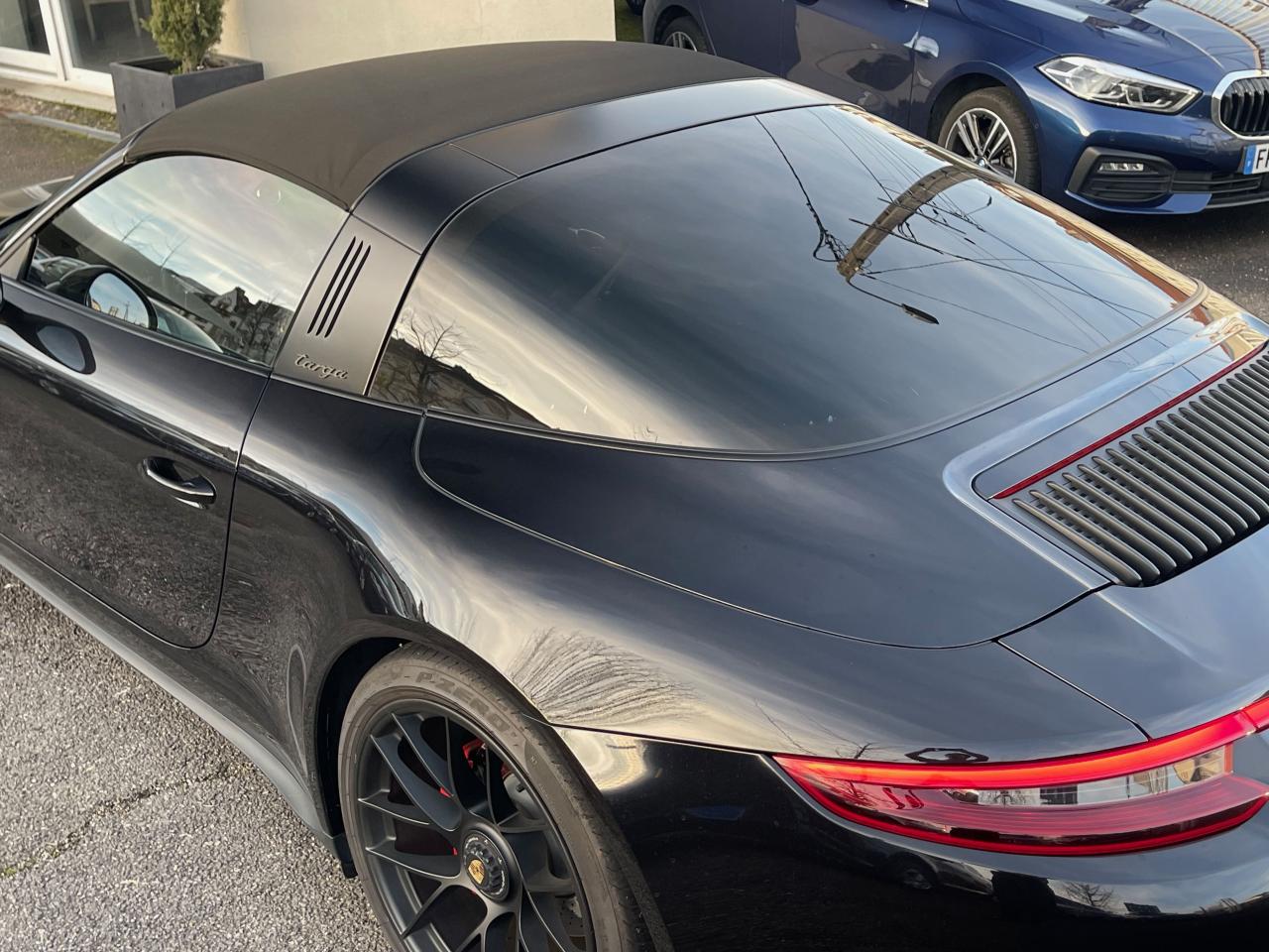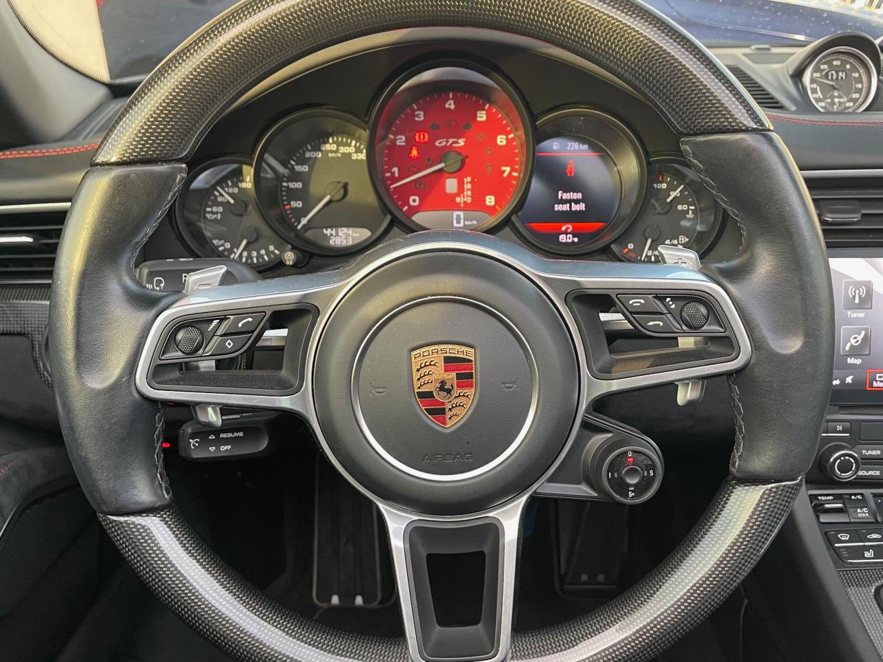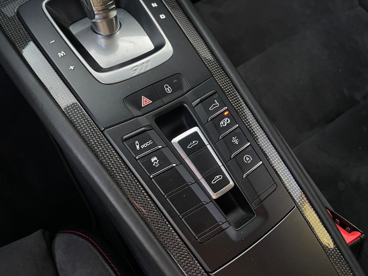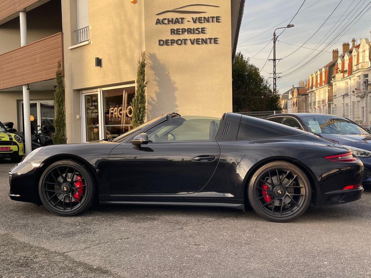 2 turbos, 2 échangeurs air/air3 Prises 12 V (plancher passager, boîte à gants, coffre de rangement de la console centrale)4 soupapes par cylindre5 instruments ronds intégrés dans le cockpitAffichage analogique : régime, vitesse, pression et température de l'huile, température du liquide de refroidissement et jauge de carburantAffichage de la vitesse engagée sur le compte-toursAileron arrière à déploiement automatiqueAirbags grand volume (deux niveaux de gonflage) pour le conducteur et le passagerApplication Connect, Navigation avec information trafic en temps réel, visualisation avec Google Earth et Google Street ViewAppuie-tête intégrés aux sièges avant avec inscription « GTS » brodée en NoirArceau Targa fixe avec baguette en Aluminium peinte en Noir, ouïes et inscription « targa » de couleur NoirAssistance au démarrageAssistance automatique à l'utilisation des feux de croisement comprenant l'éclairage d'accompagnementBaguettes de seuil de porte avec monogrammeBandes centrales et latérales des sièges avant et appuie-tête en cuir estampéBloc moteur et culasse en aluminiumBlocs optiques additionnels séparés, intégrés dans le bouclier avant, incluant les feux de jour et de position ainsi que les clignotants à diodes électroluminescentesBoîte à gants grand volume verrouillableBoîte de vitesse Porsche Doppelkupplung (PDK)Bouclier avant SportDesign avec lèvre de spoiler noireBoucliers avant et arrière déformables, avec pare-chocs intégrés (en alliage léger) fixés sur des absorbeurs de chocsCapot de coffre à bagages, ailes avant, portières et capot arrière en aluminiumCeintures de sécurité à 3 points à l'avant et à l'arrière, boucles de ceintures sur les siègesCiel de toit et montant de lunette arrière en alcantaraClimatisation automatique 2 zones avec réglage individuel de la température pour le conducteur et le passager, commande automatique du recyclage de l'air avec capteur de qualité d'airCommande vocaleCompensation hydraulique du jeu des soupapesConception allégée intelligente acier/aluminiumConsole centrale montante avec barrettes de commandes, vide-poches et coffre de rangement fermé comportant une prise 12 VContrôle de pression des pneus ( TPMS )Coque des dossiers peinte en GrisCouronne du volant, leviers de vitesse et de frein à main, poignées de porte, accoudoirs et coffre de rangement de la console centrale en cuir lisseCrochets porte-vêtement au dos des sièges avant et sur les montants latérauxDeux catalyseurs à 3 voiesDiamètre des disques de frein 350 mm à l'avant, 330 mm à l'arrièreDirection assistée électromécanique à démultiplication variable et impulsionDispositif antidémarrage avec verrouillage centralisé et télécommande, dispositif de sécurité, système d'alarme et alarme volumétriqueDispositif de contrôle de l'usure des freins sur chaque plaquetteDisques ventilés et ajourés à l'avant et à l'arrièreÉléments en Argent galvanisé : buses d'aération, baguettes décoratives du tableau de bord, cache de la console centrale, poignée de la boîte à gants, poignées et baguettes de parement des portesEssieu arrière multibras avec barres stabilisatricesEssieu avant avec jambes de force McPherson et barres stabilisatricesEtriers de frein rougesÉtriers fixes monobloc en aluminium à 6 pistons à l'avant et 4 pistons à l'arrièreFeux arrière comprenant les feux de recul et les clignotants, le feu antibrouillard arrière ainsi que le troisième feu stop et l'éclairage de la plaque minéralogique à diodes électroluminescentesFiltres à particules et à pollen avec filtre à charbon actifFonction Stop-Start automatiqueFonds de compteur (compte-tours compris) et inscription « GTS » en NoirFrein de parking électriqueInjection directe d'essence (Direct Fuel Injection, DFI)Inscription décorative « GTS » sur les portes gauche et droite en NoirJantes « 911 Turbo S » 20 pouces en alliage léger forgé, avec fixation centrale, en Noir (finition satinée)Kit de réparation des pneus avec compresseur électriqueLubrification intégrée à carter secModule Connect Plus Apple CarPlay, rangement pour smartphone, Hotspot Wi-Fi, Porsche Car Connect avec Services de contrôle à distance, module de téléphone LTEPack Audio PlusPack Sport Chrono avec sélecteur de mode et application Porsche Track PrecisionPhares Bi-Xénon avec réglage dynamique de la portée d'éclairage et lave-phares avec gicleurs en Noir finition satinéePlaquette portant l'inscription Carrera devant le levier de vitessePompe à huile à régulation électroniquePorsche Active Suspension Management (PASM) avec abaissement du châssis de 10 mmPorsche Communication Management (PCM) avec module de navigationPorsche Side Impact Protection System (POSIP) comprenant : protection anti-encastrement latérale dans les portes,airbags thorax intégrés dans les bandes extérieures des sièges avant et airbags de tête intégrés dans les contre-portes pour le condPré-équipement pour l'installation en seconde monte du dispositif ISOFIX/Top-Tether destiné à fixer le siège enfant sur le siège passager avantPré-équipement pour téléphone mobilePrétensionneurs de ceinture à l'avantRangement supplémentaire derrière les sièges arrièreRefroidissement par eau, avec gestion thermique du moteur et de la boîte de vitesseRétroviseurs extérieurs SportDesign sur panneau de porte, chauffants et à réglage électrique, base de couleur Noir satinéeServices Porsche Vehicle Tracking System (PVTS) permet l'accès aux services de commande liés au véhicule, à travers les services Porsche Car ConnectSièges arrière rabattables individuellementSièges électriques - 4 positionsSièges sport Plus avec bandes latérales rehaussées, réglages électriques pour le dossier et la hauteur dassise, et réglage mécanique de l'avancée du siègeSignature « PORSCHE » et monogramme sur le bouclier arrière en NoirSpots de lecture, éclairage 