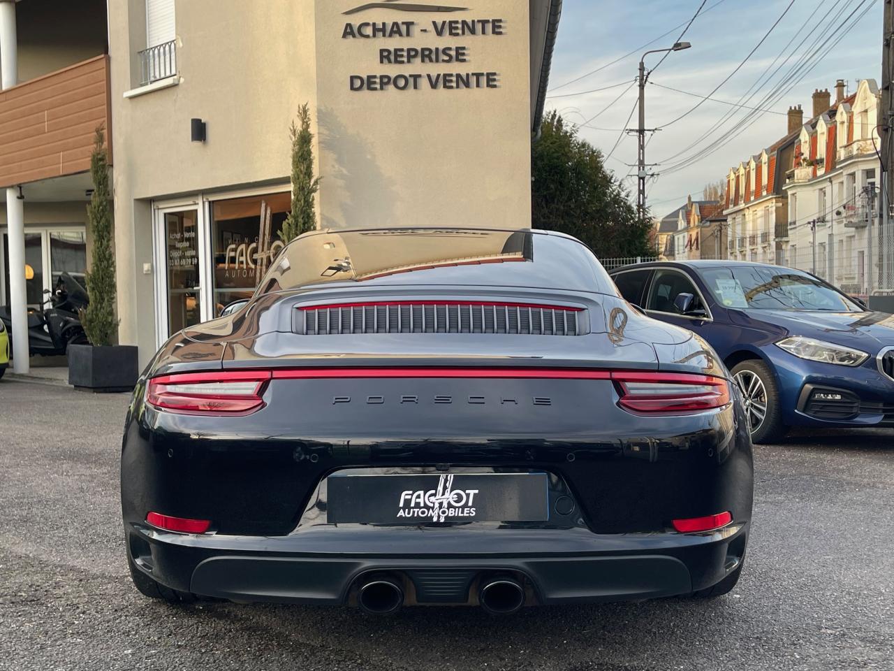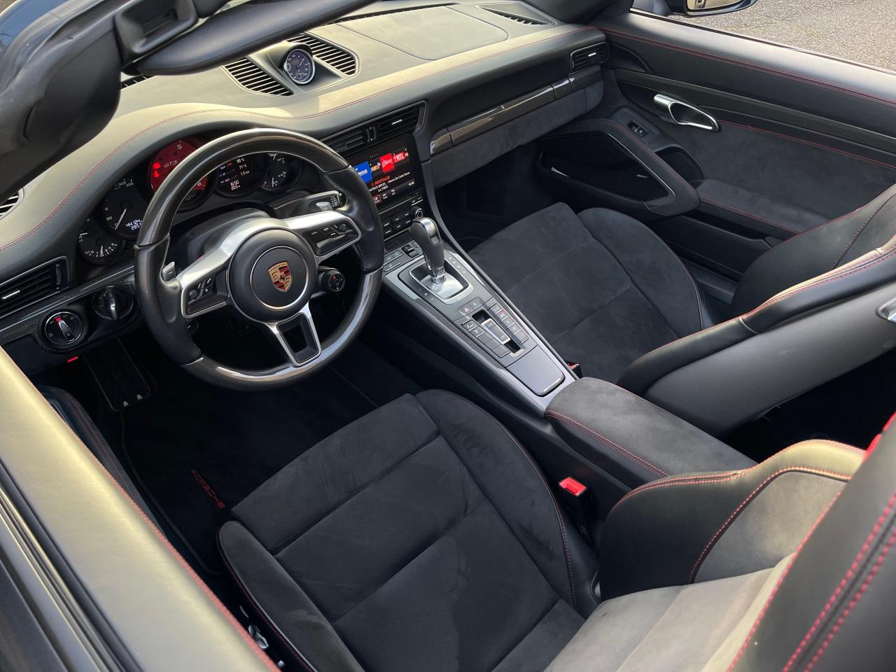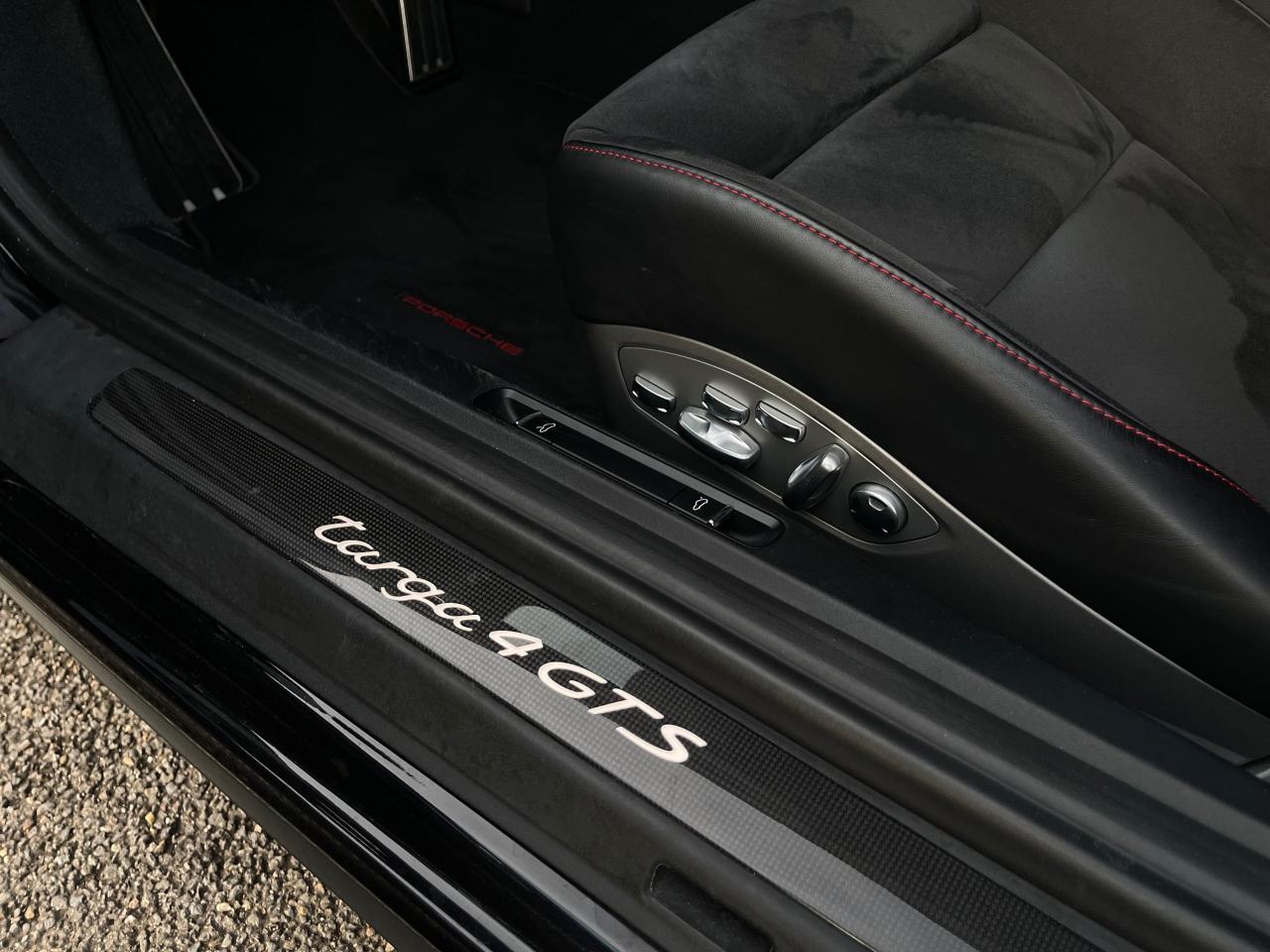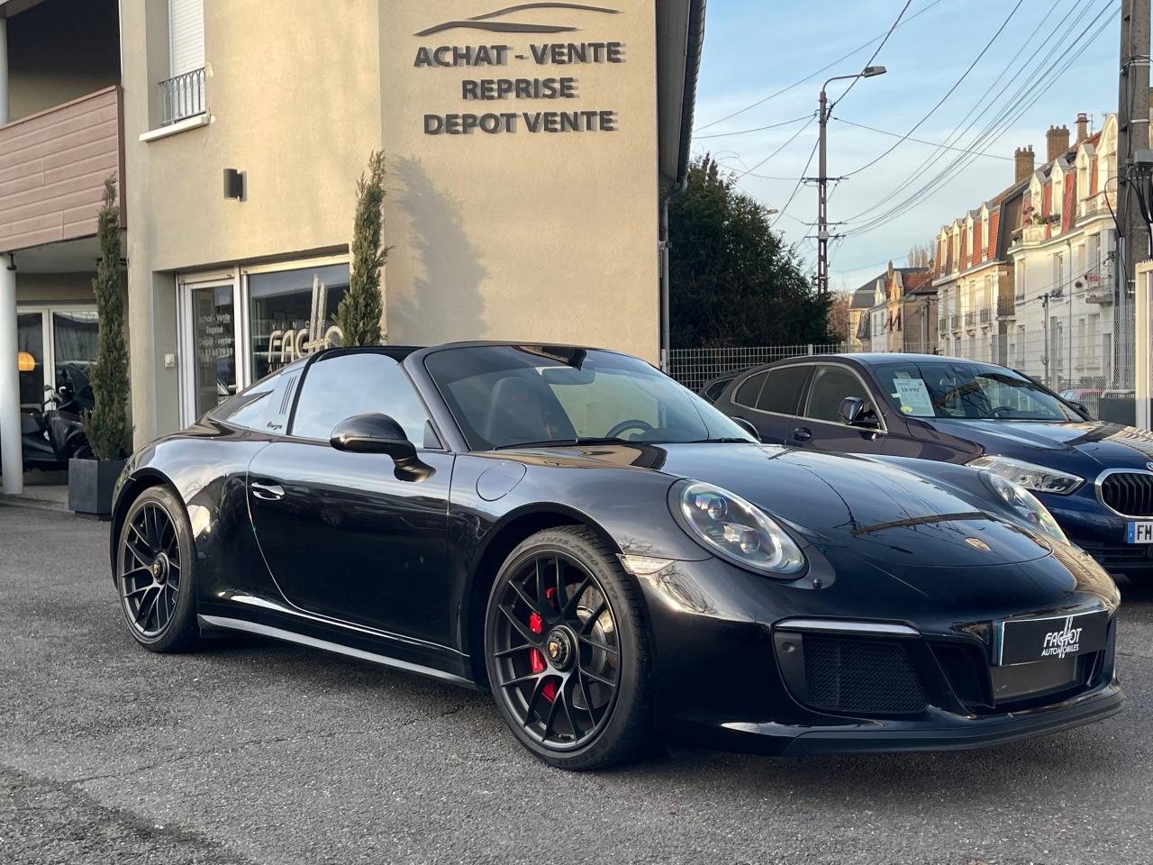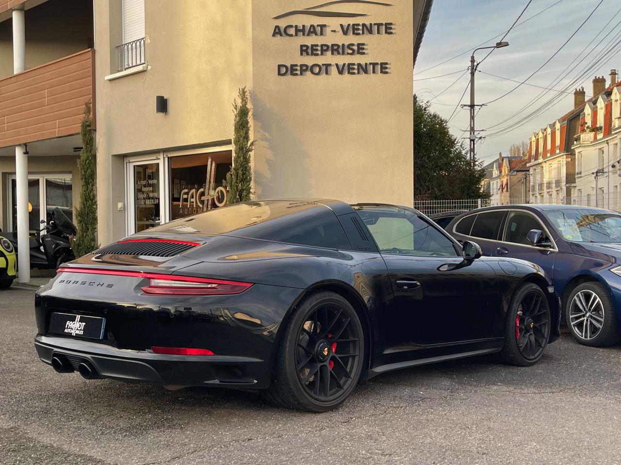 2 turbos, 2 échangeurs air/air3 Prises 12 V (plancher passager, boîte à gants, coffre de rangement de la console centrale)4 soupapes par cylindre5 instruments ronds intégrés dans le cockpitAffichage analogique : régime, vitesse, pression et température de l'huile, température du liquide de refroidissement et jauge de carburantAffichage de la vitesse engagée sur le compte-toursAileron arrière à déploiement automatiqueAirbags grand volume (deux niveaux de gonflage) pour le conducteur et le passagerApplication Connect, Navigation avec information trafic en temps réel, visualisation avec Google Earth et Google Street ViewAppuie-tête intégrés aux sièges avant avec inscription « GTS » brodée en NoirArceau Targa fixe avec baguette en Aluminium peinte en Noir, ouïes et inscription « targa » de couleur NoirAssistance au démarrageAssistance automatique à l'utilisation des feux de croisement comprenant l'éclairage d'accompagnementBaguettes de seuil de porte avec monogrammeBandes centrales et latérales des sièges avant et appuie-tête en cuir estampéBloc moteur et culasse en aluminiumBlocs optiques additionnels séparés, intégrés dans le bouclier avant, incluant les feux de jour et de position ainsi que les clignotants à diodes électroluminescentesBoîte à gants grand volume verrouillableBoîte de vitesse Porsche Doppelkupplung (PDK)Bouclier avant SportDesign avec lèvre de spoiler noireBoucliers avant et arrière déformables, avec pare-chocs intégrés (en alliage léger) fixés sur des absorbeurs de chocsCapot de coffre à bagages, ailes avant, portières et capot arrière en aluminiumCeintures de sécurité à 3 points à l'avant et à l'arrière, boucles de ceintures sur les siègesCiel de toit et montant de lunette arrière en alcantaraClimatisation automatique 2 zones avec réglage individuel de la température pour le conducteur et le passager, commande automatique du recyclage de l'air avec capteur de qualité d'airCommande vocaleCompensation hydraulique du jeu des soupapesConception allégée intelligente acier/aluminiumConsole centrale montante avec barrettes de commandes, vide-poches et coffre de rangement fermé comportant une prise 12 VContrôle de pression des pneus ( TPMS )Coque des dossiers peinte en GrisCouronne du volant, leviers de vitesse et de frein à main, poignées de porte, accoudoirs et coffre de rangement de la console centrale en cuir lisseCrochets porte-vêtement au dos des sièges avant et sur les montants latérauxDeux catalyseurs à 3 voiesDiamètre des disques de frein 350 mm à l'avant, 330 mm à l'arrièreDirection assistée électromécanique à démultiplication variable et impulsionDispositif antidémarrage avec verrouillage centralisé et télécommande, dispositif de sécurité, système d'alarme et alarme volumétriqueDispositif de contrôle de l'usure des freins sur chaque plaquetteDisques ventilés et ajourés à l'avant et à l'arrièreÉléments en Argent galvanisé : buses d'aération, baguettes décoratives du tableau de bord, cache de la console centrale, poignée de la boîte à gants, poignées et baguettes de parement des portesEssieu arrière multibras avec barres stabilisatricesEssieu avant avec jambes de force McPherson et barres stabilisatricesEtriers de frein rougesÉtriers fixes monobloc en aluminium à 6 pistons à l'avant et 4 pistons à l'arrièreFeux arrière comprenant les feux de recul et les clignotants, le feu antibrouillard arrière ainsi que le troisième feu stop et l'éclairage de la plaque minéralogique à diodes électroluminescentesFiltres à particules et à pollen avec filtre à charbon actifFonction Stop-Start automatiqueFonds de compteur (compte-tours compris) et inscription « GTS » en NoirFrein de parking électriqueInjection directe d'essence (Direct Fuel Injection, DFI)Inscription décorative « GTS » sur les portes gauche et droite en NoirJantes « 911 Turbo S » 20 pouces en alliage léger forgé, avec fixation centrale, en Noir (finition satinée)Kit de réparation des pneus avec compresseur électriqueLubrification intégrée à carter secModule Connect Plus Apple CarPlay, rangement pour smartphone, Hotspot Wi-Fi, Porsche Car Connect avec Services de contrôle à distance, module de téléphone LTEPack Audio PlusPack Sport Chrono avec sélecteur de mode et application Porsche Track PrecisionPhares Bi-Xénon avec réglage dynamique de la portée d'éclairage et lave-phares avec gicleurs en Noir finition satinéePlaquette portant l'inscription Carrera devant le levier de vitessePompe à huile à régulation électroniquePorsche Active Suspension Management (PASM) avec abaissement du châssis de 10 mmPorsche Communication Management (PCM) avec module de navigationPorsche Side Impact Protection System (POSIP) comprenant : protection anti-encastrement latérale dans les portes,airbags thorax intégrés dans les bandes extérieures des sièges avant et airbags de tête intégrés dans les contre-portes pour le condPré-équipement pour l'installation en seconde monte du dispositif ISOFIX/Top-Tether destiné à fixer le siège enfant sur le siège passager avantPré-équipement pour téléphone mobilePrétensionneurs de ceinture à l'avantRangement supplémentaire derrière les sièges arrièreRefroidissement par eau, avec gestion thermique du moteur et de la boîte de vitesseRétroviseurs extérieurs SportDesign sur panneau de porte, chauffants et à réglage électrique, base de couleur Noir satinéeServices Porsche Vehicle Tracking System (PVTS) permet l'accès aux services de commande liés au véhicule, à travers les services Porsche Car ConnectSièges arrière rabattables individuellementSièges électriques - 4 positionsSièges sport Plus avec bandes latérales rehaussées, réglages électriques pour le dossier et la hauteur dassise, et réglage mécanique de l'avancée du siègeSignature « PORSCHE » et monogramme sur le bouclier arrière en NoirSpots de lecture, éclairage 