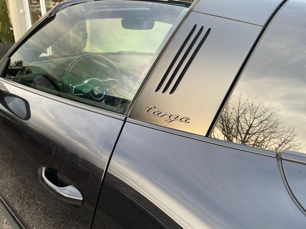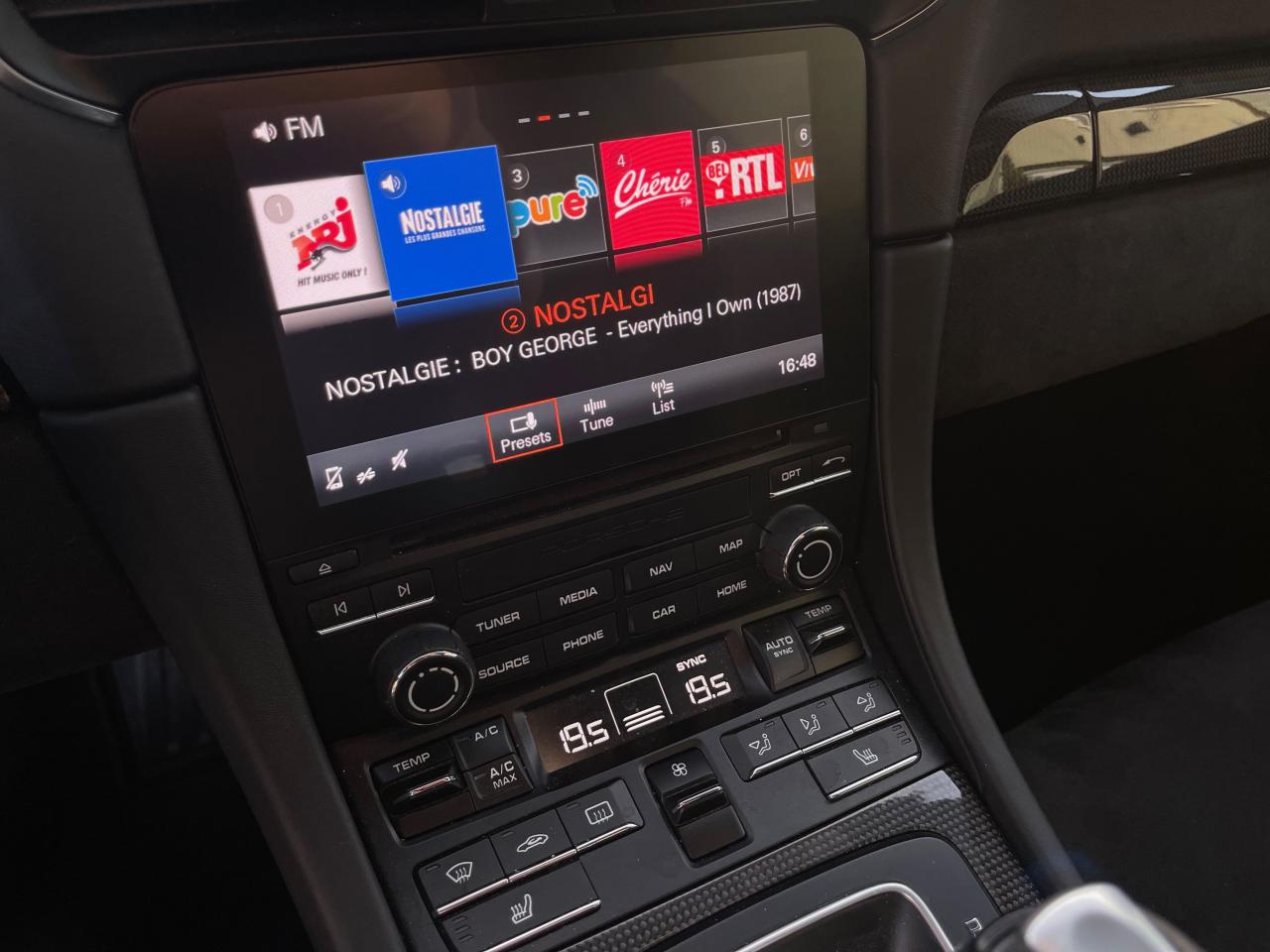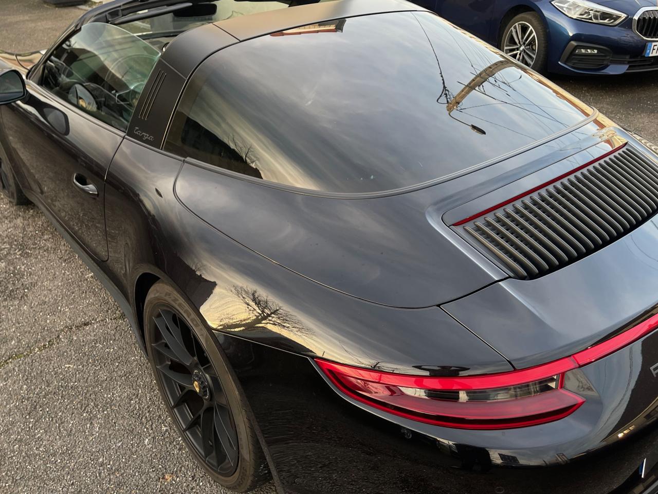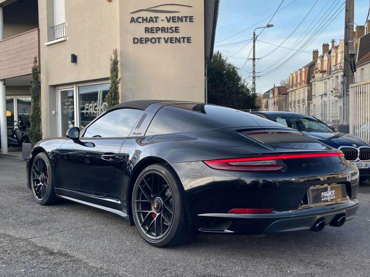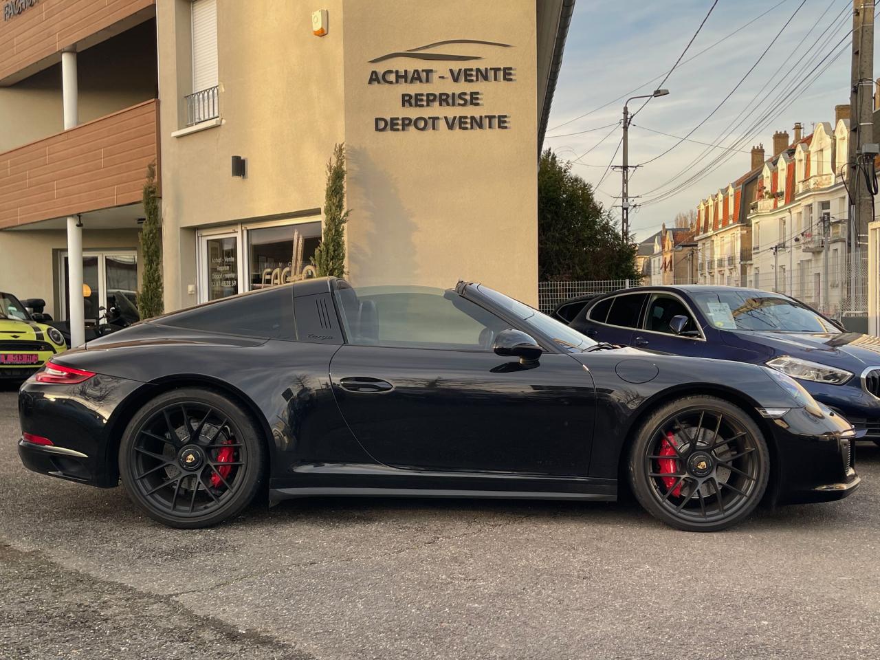 2 turbos, 2 échangeurs air/air3 Prises 12 V (plancher passager, boîte à gants, coffre de rangement de la console centrale)4 soupapes par cylindre5 instruments ronds intégrés dans le cockpitAffichage analogique : régime, vitesse, pression et température de l'huile, température du liquide de refroidissement et jauge de carburantAffichage de la vitesse engagée sur le compte-toursAileron arrière à déploiement automatiqueAirbags grand volume (deux niveaux de gonflage) pour le conducteur et le passagerApplication Connect, Navigation avec information trafic en temps réel, visualisation avec Google Earth et Google Street ViewAppuie-tête intégrés aux sièges avant avec inscription « GTS » brodée en NoirArceau Targa fixe avec baguette en Aluminium peinte en Noir, ouïes et inscription « targa » de couleur NoirAssistance au démarrageAssistance automatique à l'utilisation des feux de croisement comprenant l'éclairage d'accompagnementBaguettes de seuil de porte avec monogrammeBandes centrales et latérales des sièges avant et appuie-tête en cuir estampéBloc moteur et culasse en aluminiumBlocs optiques additionnels séparés, intégrés dans le bouclier avant, incluant les feux de jour et de position ainsi que les clignotants à diodes électroluminescentesBoîte à gants grand volume verrouillableBoîte de vitesse Porsche Doppelkupplung (PDK)Bouclier avant SportDesign avec lèvre de spoiler noireBoucliers avant et arrière déformables, avec pare-chocs intégrés (en alliage léger) fixés sur des absorbeurs de chocsCapot de coffre à bagages, ailes avant, portières et capot arrière en aluminiumCeintures de sécurité à 3 points à l'avant et à l'arrière, boucles de ceintures sur les siègesCiel de toit et montant de lunette arrière en alcantaraClimatisation automatique 2 zones avec réglage individuel de la température pour le conducteur et le passager, commande automatique du recyclage de l'air avec capteur de qualité d'airCommande vocaleCompensation hydraulique du jeu des soupapesConception allégée intelligente acier/aluminiumConsole centrale montante avec barrettes de commandes, vide-poches et coffre de rangement fermé comportant une prise 12 VContrôle de pression des pneus ( TPMS )Coque des dossiers peinte en GrisCouronne du volant, leviers de vitesse et de frein à main, poignées de porte, accoudoirs et coffre de rangement de la console centrale en cuir lisseCrochets porte-vêtement au dos des sièges avant et sur les montants latérauxDeux catalyseurs à 3 voiesDiamètre des disques de frein 350 mm à l'avant, 330 mm à l'arrièreDirection assistée électromécanique à démultiplication variable et impulsionDispositif antidémarrage avec verrouillage centralisé et télécommande, dispositif de sécurité, système d'alarme et alarme volumétriqueDispositif de contrôle de l'usure des freins sur chaque plaquetteDisques ventilés et ajourés à l'avant et à l'arrièreÉléments en Argent galvanisé : buses d'aération, baguettes décoratives du tableau de bord, cache de la console centrale, poignée de la boîte à gants, poignées et baguettes de parement des portesEssieu arrière multibras avec barres stabilisatricesEssieu avant avec jambes de force McPherson et barres stabilisatricesEtriers de frein rougesÉtriers fixes monobloc en aluminium à 6 pistons à l'avant et 4 pistons à l'arrièreFeux arrière comprenant les feux de recul et les clignotants, le feu antibrouillard arrière ainsi que le troisième feu stop et l'éclairage de la plaque minéralogique à diodes électroluminescentesFiltres à particules et à pollen avec filtre à charbon actifFonction Stop-Start automatiqueFonds de compteur (compte-tours compris) et inscription « GTS » en NoirFrein de parking électriqueInjection directe d'essence (Direct Fuel Injection, DFI)Inscription décorative « GTS » sur les portes gauche et droite en NoirJantes « 911 Turbo S » 20 pouces en alliage léger forgé, avec fixation centrale, en Noir (finition satinée)Kit de réparation des pneus avec compresseur électriqueLubrification intégrée à carter secModule Connect Plus Apple CarPlay, rangement pour smartphone, Hotspot Wi-Fi, Porsche Car Connect avec Services de contrôle à distance, module de téléphone LTEPack Audio PlusPack Sport Chrono avec sélecteur de mode et application Porsche Track PrecisionPhares Bi-Xénon avec réglage dynamique de la portée d'éclairage et lave-phares avec gicleurs en Noir finition satinéePlaquette portant l'inscription Carrera devant le levier de vitessePompe à huile à régulation électroniquePorsche Active Suspension Management (PASM) avec abaissement du châssis de 10 mmPorsche Communication Management (PCM) avec module de navigationPorsche Side Impact Protection System (POSIP) comprenant : protection anti-encastrement latérale dans les portes,airbags thorax intégrés dans les bandes extérieures des sièges avant et airbags de tête intégrés dans les contre-portes pour le condPré-équipement pour l'installation en seconde monte du dispositif ISOFIX/Top-Tether destiné à fixer le siège enfant sur le siège passager avantPré-équipement pour téléphone mobilePrétensionneurs de ceinture à l'avantRangement supplémentaire derrière les sièges arrièreRefroidissement par eau, avec gestion thermique du moteur et de la boîte de vitesseRétroviseurs extérieurs SportDesign sur panneau de porte, chauffants et à réglage électrique, base de couleur Noir satinéeServices Porsche Vehicle Tracking System (PVTS) permet l'accès aux services de commande liés au véhicule, à travers les services Porsche Car ConnectSièges arrière rabattables individuellementSièges électriques - 4 positionsSièges sport Plus avec bandes latérales rehaussées, réglages électriques pour le dossier et la hauteur dassise, et réglage mécanique de l'avancée du siègeSignature « PORSCHE » et monogramme sur le bouclier arrière en NoirSpots de lecture, éclairage 