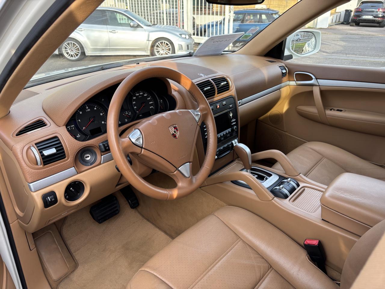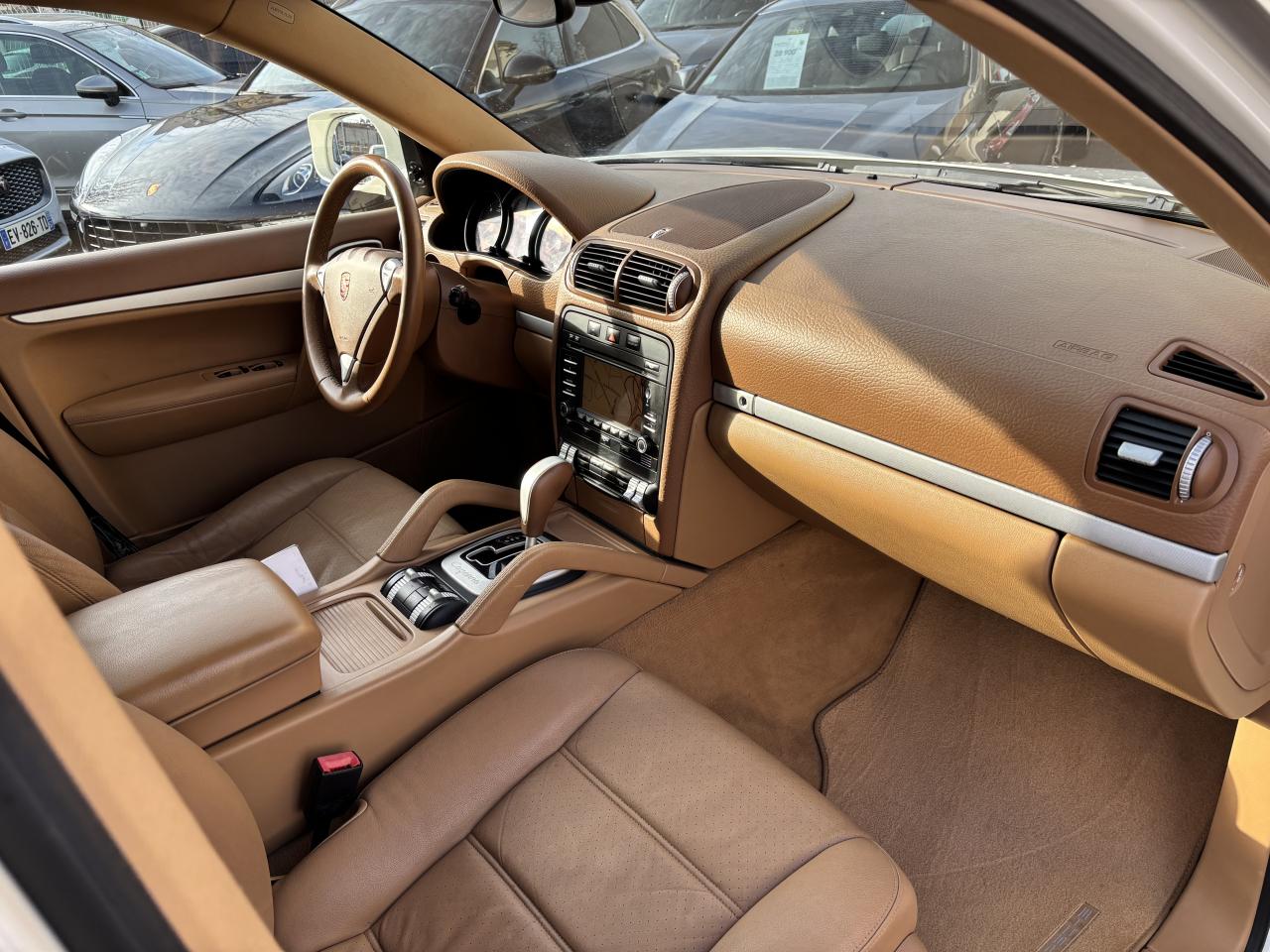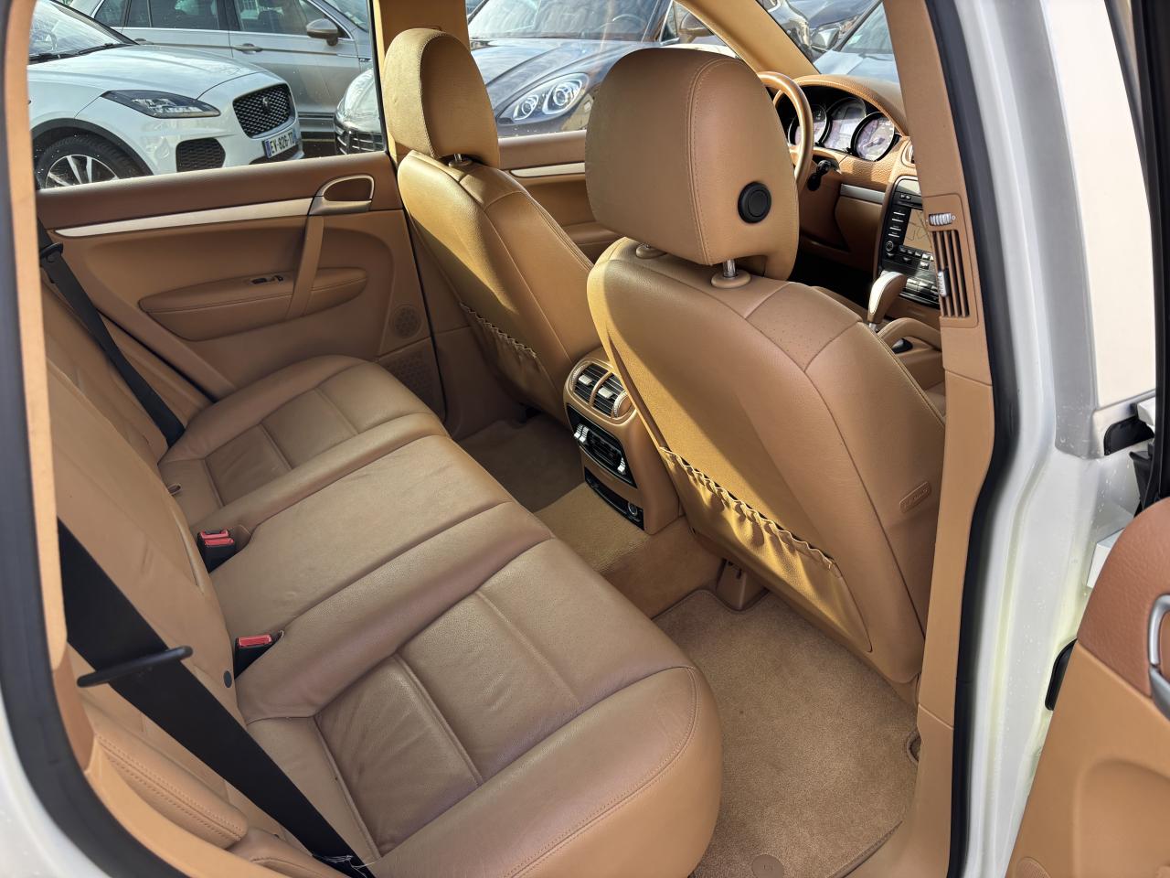 3ème feu stop arrière4 portes avec protection anti-encastrement latérale5 instruments ronds cerclés de noir et combinés à l'écran d'affichage5 prises 12 voltsAffichage analogique : pression huile, température liquide refroidissement, autonomie, voltmètreAirbags grand volume pour le conducteur et le passagerAirbags latéraux avantAirbags rideaux, gauche et droit, (couverture complète du toit et des fenêtres latérales, des montants de pare-brise aux montants de lunette arrière)Antennes intégrées au becquet arrièreAppuie-tête réglables sur 4 siègesAssistance électrique pour ouverture/fermeture du hayonAutoradio CDR-30 avec optimisation du confort de commande, écran 5 pouces monochrome, compatible mp3, 12 haut-parleurs ,amplificateur 4 x 25 WattsAvertisseur sonore à 2 tonalités avec avertisseur sonore simple supplémentaire pour système d'alarmeBanquette AR fractionnable 60/40 ou entièrement rabattable (pour coffre grand volume complètement plat), avec accoudoir central incluant compartiment de rangementBatterie à partir de 110 Ah (selon équipement)Bouclier avant avec entrées d'airCapacité du coffre à bagages de 540 l (adapté à 4 grandes valises), 1 770 l avec sièges arrière rabattusCapacité du réservoir : 100 l (dont 12 l de réserve)Carrosserie galvanisée autoporteuseCeintures de sécurité 3 points avec prétensionneur (sièges avant et sièges arrière latéraux) et limiteur d'effort de ceinture (sièges avant), ceinture 3 points sur la place arrière centraleChâssis à ressorts en acierChauffage de la lunette arrière avec arrêt automatiqueCiel de toit en tissuClimatisation manuelleCombiné avec écran matriciel 3, et le cas échéant affichage des rapports pour la Tiptronic S, des intervalles de révision, de la T°et des différents témoins d'alarme, éclairage DEL jauneConcept d'éclairage d'ambiance de l'habitacleCouronne du volant en cuir (imprimé Venezia)Couvre-bagages souple et extensible, intégré dans une cassette amovibleDeux sorties d'échappement chromées droite et gaucheDiagnostic embarqué (OBD II) avec contrôle des émissionsDirection assistéeDispositif de contrôle de l'usure des freins sur chaque plaquetteDos des sièges avant avec aumônières intégréesDouble pare-soleil conducteur et passagerEntourage du levier/sélecteur de vitesse, console centrale avant et commandes de châssis noirsEssieu arrière multibrasEssieu avant à double triangulationEssuie-glace arrière avec réglage de l'intermittence et buse de lave-glace intégrée au becquetEssuie-glace avant à 2 vitesses de balayage et intermittence variable, capteur de pluie, et buses de lave-glace chauffantesEtriers noiresFermeture centralisée des portes avec télécommandeFeux de position et clignotants intégrés dans un bloc optique vertical, de type barretteFiltres à particules et à pollen avec filtre à charbon actifGarnitures de marche-pied en matière compositeHayon avec lunette arrière à ouverture indépendanteInserts aspect métalJantes Cayenne 7,5 J x 17 pouces en alliage léger avec pneus 235/65 R 17Kit de dépannage pneumatique (anneau de remorquage, compresseur et flacon de produit de colmatage)Lève-vitres électriques avant et arrière, avec fonction confort et anti-pincement et fonction Tipp-up/Tipp-downMoquette en velours tuftéOrdinateur de bordPédales en matière compositePhares principaus de type projecteurs H7 avec réglage manuel de la portéePorte-gobelets doubles à l'avant et à l'arrièrePorte-lunettes dans la console de toitPortes avec protection anti-encastrement latéralePré-équipement au dispositif d'attelage : précâblage pour faciliter le montage ultérieur d'un dispositif d'attelage rétractable électriquement ou avec boule d'attelage amoviblePré-équipement système Porsche Vehicle Tracking System (PVTS)Projecteurs antibrouillardRétroviseurs extérieurs chauffants, réglables et repliables électriquement, de forme asphérique côté conducteurRails de toit noirsRangements dans l'habitacleRenvois de ceinture des sièges avant et arrière latéraux réglables manuellement en hauteurSièges (partiellement), levier/sélecteur de vitesse, poignées de porte, poignées de maintien de la console centrale et accoudoirs de porte en cuir impriméSièges avant électriques : réglages électriques en hauteur, de l'inclinaison du siège et du dossier, de l'avancée du siège et du soutien lombaire, côtés conducteur et passagerSièges passager avant et latéraux arrière équipés du dispositif de fixation des sièges enfants ISOFIXSystème "Roll-Over" (détection de tonneaux) déclenche airbags rideaux et prétensionneurs de ceinturesSystème anti-démarrage à transpondeur, sécurisation du coffre, système antivol avec contrôle de l'habitacle par ultrasonsSystème antichocs avec traverses haute résistance et deux éléments de déformation, avec logements pour le crochet de remorquage de l'équipement de bordSystème de stabilisation Porsche Stability Management (PSM) incluant les systèmes de régulation du couple moteur (MSR) et de stabilisation de caisseTechnologie 4 soupapesTouche « Sport »Vitres teintées et thermo-isolées avec bande grise sur le pare-briseVolant à réglage manuel en hauteur et en profondeurVINCENT FACHOT AUTOMOBILES - ACHAT - VENTE - REPRISE DE TOUS VEHICULES