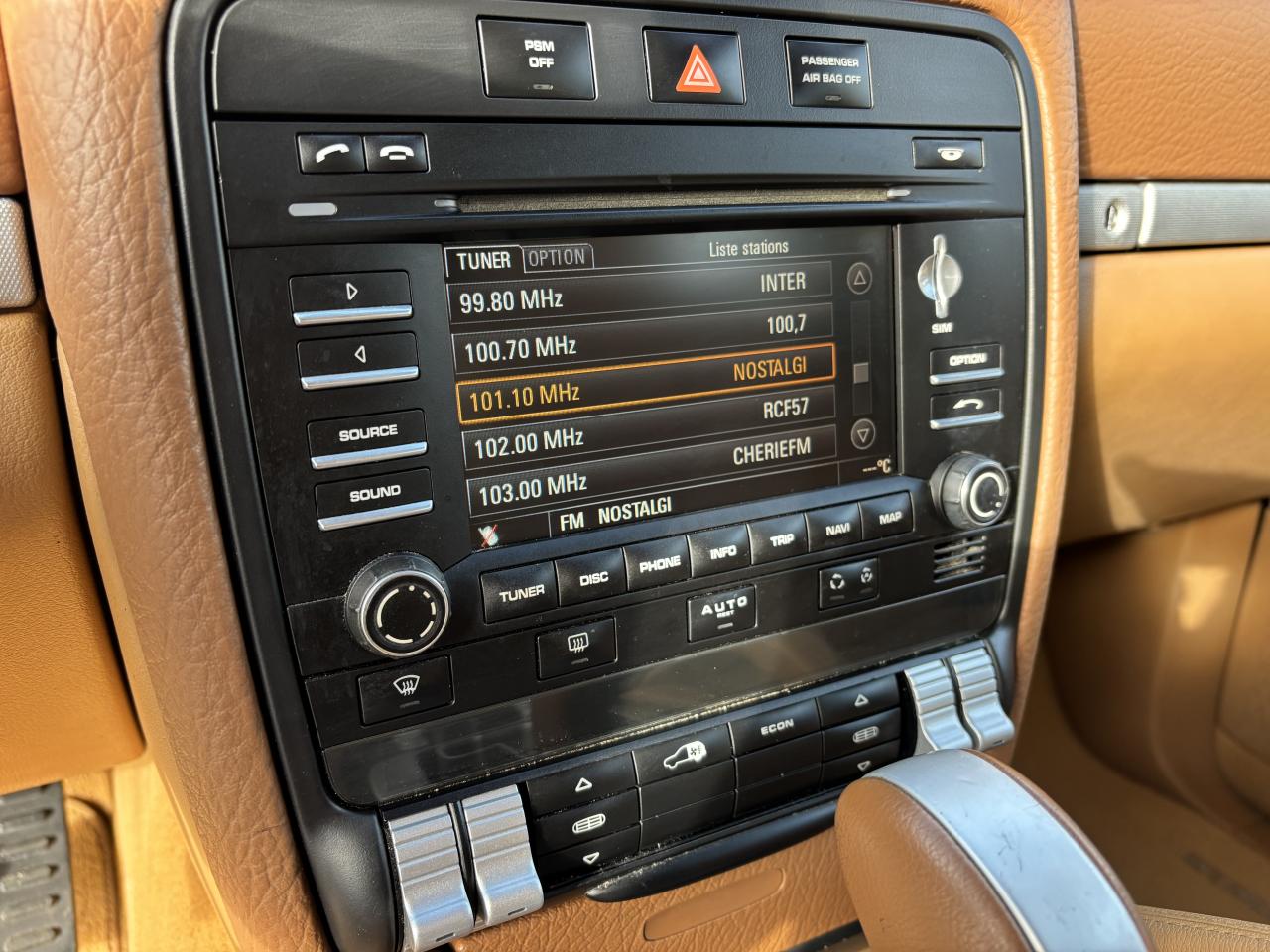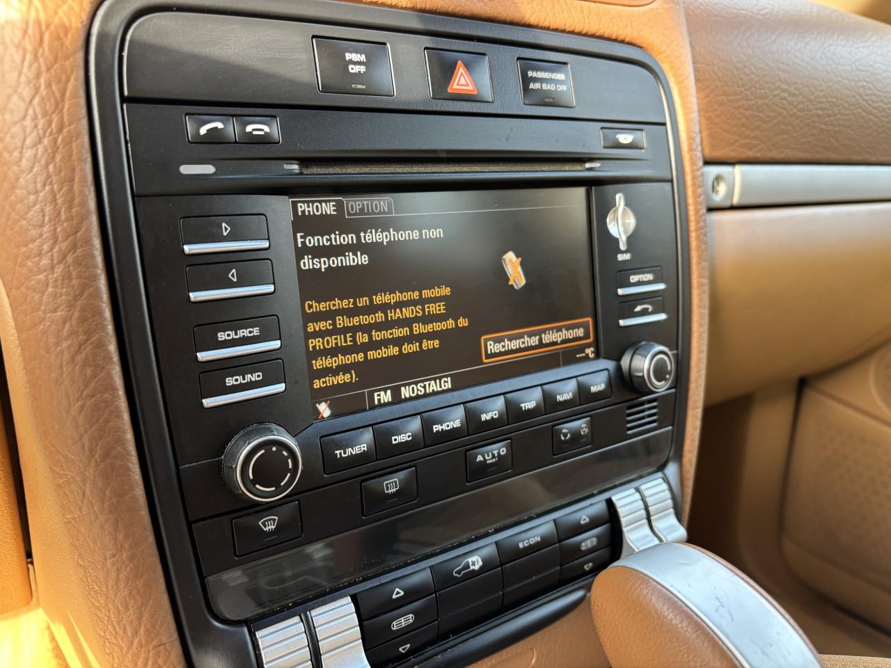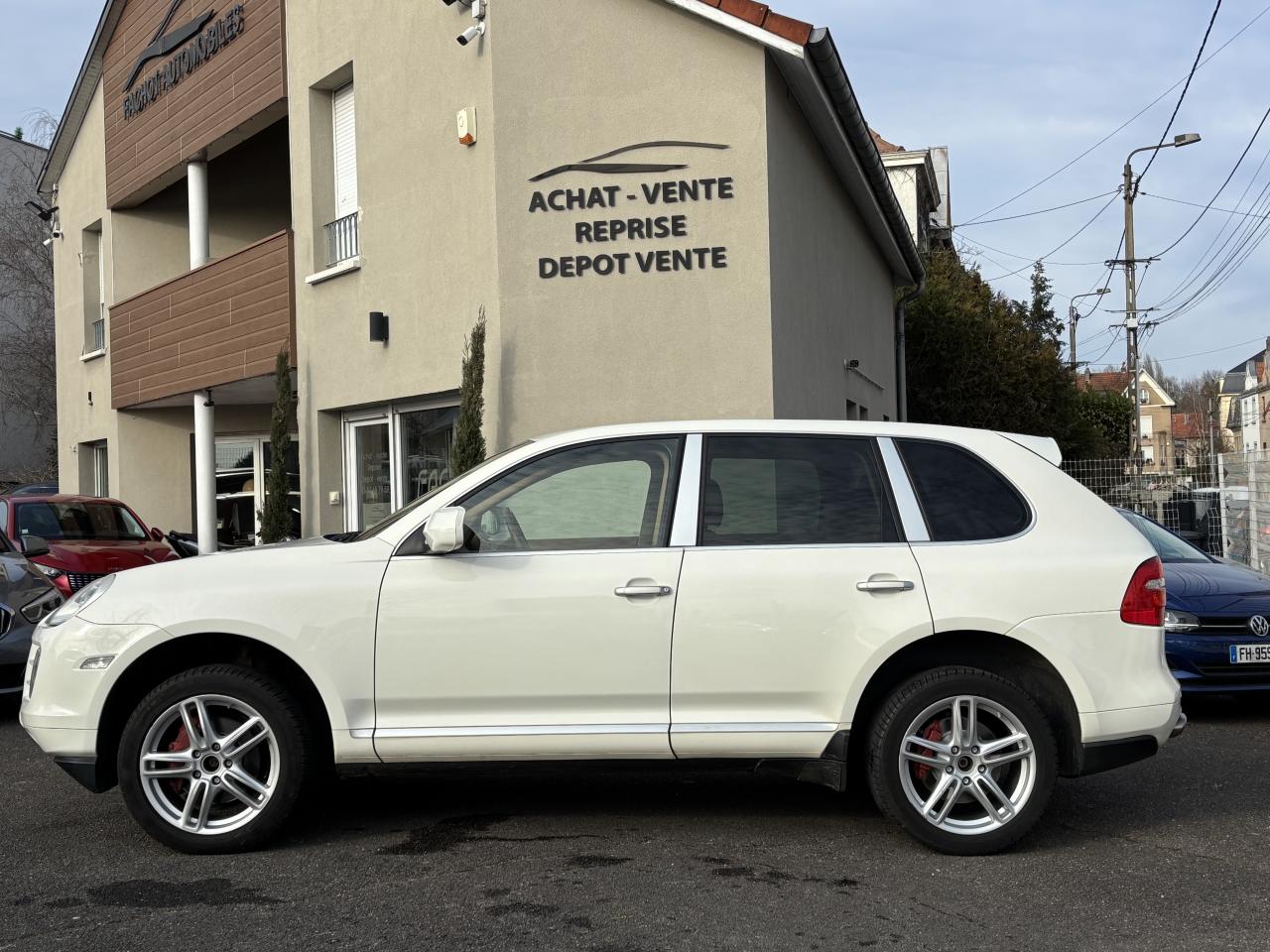3ème feu stop arrière4 portes avec protection anti-encastrement latérale5 instruments ronds cerclés de noir et combinés à l'écran d'affichage5 prises 12 voltsAffichage analogique : pression huile, température liquide refroidissement, autonomie, voltmètreAirbags grand volume pour le conducteur et le passagerAirbags latéraux avantAirbags rideaux, gauche et droit, (couverture complète du toit et des fenêtres latérales, des montants de pare-brise aux montants de lunette arrière)Antennes intégrées au becquet arrièreAppuie-tête réglables sur 4 siègesAssistance électrique pour ouverture/fermeture du hayonAutoradio CDR-30 avec optimisation du confort de commande, écran 5 pouces monochrome, compatible mp3, 12 haut-parleurs ,amplificateur 4 x 25 WattsAvertisseur sonore à 2 tonalités avec avertisseur sonore simple supplémentaire pour système d'alarmeBanquette AR fractionnable 60/40 ou entièrement rabattable (pour coffre grand volume complètement plat), avec accoudoir central incluant compartiment de rangementBatterie à partir de 110 Ah (selon équipement)Bouclier avant avec entrées d'airCapacité du coffre à bagages de 540 l (adapté à 4 grandes valises), 1 770 l avec sièges arrière rabattusCapacité du réservoir : 100 l (dont 12 l de réserve)Carrosserie galvanisée autoporteuseCeintures de sécurité 3 points avec prétensionneur (sièges avant et sièges arrière latéraux) et limiteur d'effort de ceinture (sièges avant), ceinture 3 points sur la place arrière centraleChâssis à ressorts en acierChauffage de la lunette arrière avec arrêt automatiqueCiel de toit en tissuClimatisation manuelleCombiné avec écran matriciel 3, et le cas échéant affichage des rapports pour la Tiptronic S, des intervalles de révision, de la T°et des différents témoins d'alarme, éclairage DEL jauneConcept d'éclairage d'ambiance de l'habitacleCouronne du volant en cuir (imprimé Venezia)Couvre-bagages souple et extensible, intégré dans une cassette amovibleDeux sorties d'échappement chromées droite et gaucheDiagnostic embarqué (OBD II) avec contrôle des émissionsDirection assistéeDispositif de contrôle de l'usure des freins sur chaque plaquetteDos des sièges avant avec aumônières intégréesDouble pare-soleil conducteur et passagerEntourage du levier/sélecteur de vitesse, console centrale avant et commandes de châssis noirsEssieu arrière multibrasEssieu avant à double triangulationEssuie-glace arrière avec réglage de l'intermittence et buse de lave-glace intégrée au becquetEssuie-glace avant à 2 vitesses de balayage et intermittence variable, capteur de pluie, et buses de lave-glace chauffantesEtriers noiresFermeture centralisée des portes avec télécommandeFeux de position et clignotants intégrés dans un bloc optique vertical, de type barretteFiltres à particules et à pollen avec filtre à charbon actifGarnitures de marche-pied en matière compositeHayon avec lunette arrière à ouverture indépendanteInserts aspect métalJantes Cayenne 7,5 J x 17 pouces en alliage léger avec pneus 235/65 R 17Kit de dépannage pneumatique (anneau de remorquage, compresseur et flacon de produit de colmatage)Lève-vitres électriques avant et arrière, avec fonction confort et anti-pincement et fonction Tipp-up/Tipp-downMoquette en velours tuftéOrdinateur de bordPédales en matière compositePhares principaus de type projecteurs H7 avec réglage manuel de la portéePorte-gobelets doubles à l'avant et à l'arrièrePorte-lunettes dans la console de toitPortes avec protection anti-encastrement latéralePré-équipement au dispositif d'attelage : précâblage pour faciliter le montage ultérieur d'un dispositif d'attelage rétractable électriquement ou avec boule d'attelage amoviblePré-équipement système Porsche Vehicle Tracking System (PVTS)Projecteurs antibrouillardRétroviseurs extérieurs chauffants, réglables et repliables électriquement, de forme asphérique côté conducteurRails de toit noirsRangements dans l'habitacleRenvois de ceinture des sièges avant et arrière latéraux réglables manuellement en hauteurSièges (partiellement), levier/sélecteur de vitesse, poignées de porte, poignées de maintien de la console centrale et accoudoirs de porte en cuir impriméSièges avant électriques : réglages électriques en hauteur, de l'inclinaison du siège et du dossier, de l'avancée du siège et du soutien lombaire, côtés conducteur et passagerSièges passager avant et latéraux arrière équipés du dispositif de fixation des sièges enfants ISOFIXSystème "Roll-Over" (détection de tonneaux) déclenche airbags rideaux et prétensionneurs de ceinturesSystème anti-démarrage à transpondeur, sécurisation du coffre, système antivol avec contrôle de l'habitacle par ultrasonsSystème antichocs avec traverses haute résistance et deux éléments de déformation, avec logements pour le crochet de remorquage de l'équipement de bordSystème de stabilisation Porsche Stability Management (PSM) incluant les systèmes de régulation du couple moteur (MSR) et de stabilisation de caisseTechnologie 4 soupapesTouche « Sport »Vitres teintées et thermo-isolées avec bande grise sur le pare-briseVolant à réglage manuel en hauteur et en profondeurVINCENT FACHOT AUTOMOBILES - ACHAT - VENTE - REPRISE DE TOUS VEHICULES