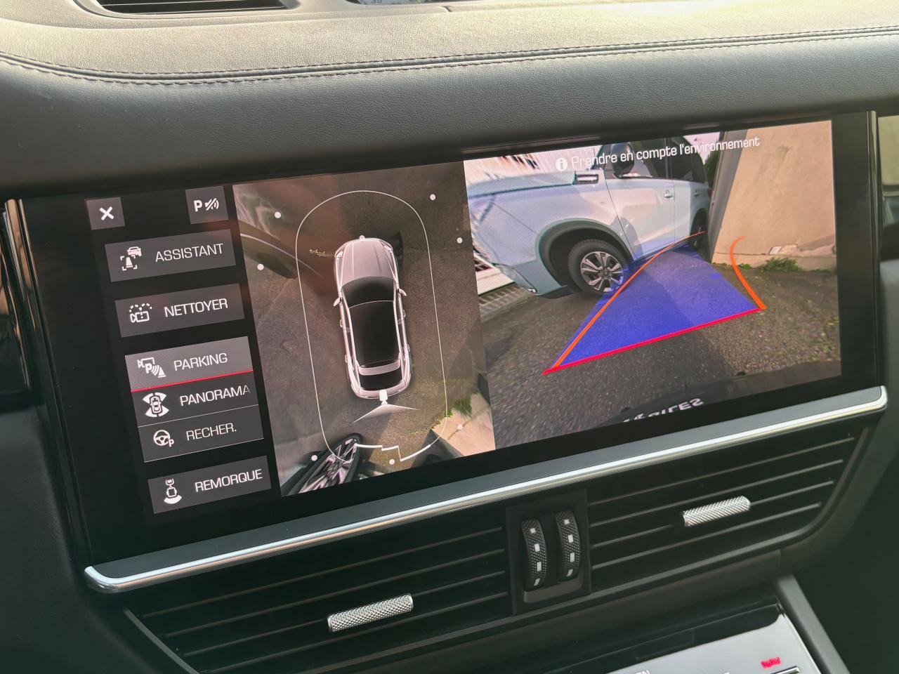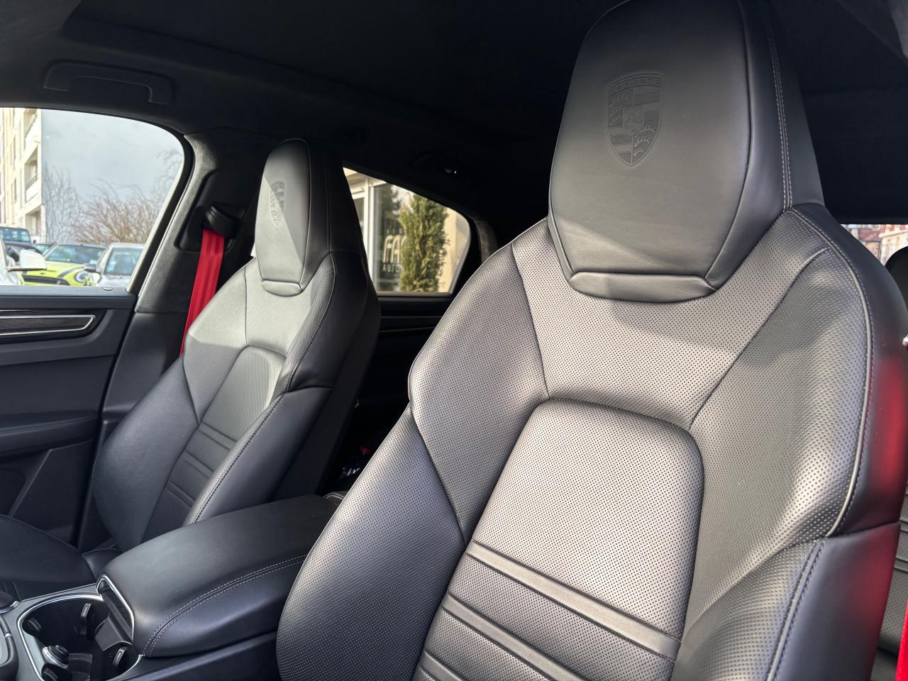 Ce véhicule dispose d’un niveau d’équipement très complet incluant la boîte Tiptronic S 8 rapports, la transmission intégrale PTM, Porsche 4D Chassis Control, Porsche Torque Vectoring Plus, jantes 21" Aerodesign, systèmes d’aide au stationnement avant/arrière, PCM avec module de navigation et Connect Plus (LTE, Wi‑Fi, services Porsche Connect), Apple CarPlay, chargeur embarqué 7,2 kW et Porsche Mobile Charger (avec support et sac), hayon automatique, toit panoramique, régulateur de vitesse, sièges chauffants avant et arrière, volants chauffant et multifonctions avec palettes, ainsi que de nombreuses solutions de sécurité active et passive (airbags multiples, TPMS, PSM, aides à la descente).