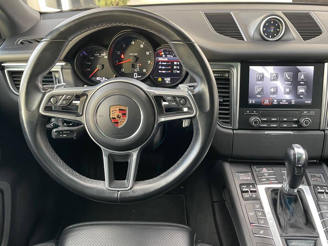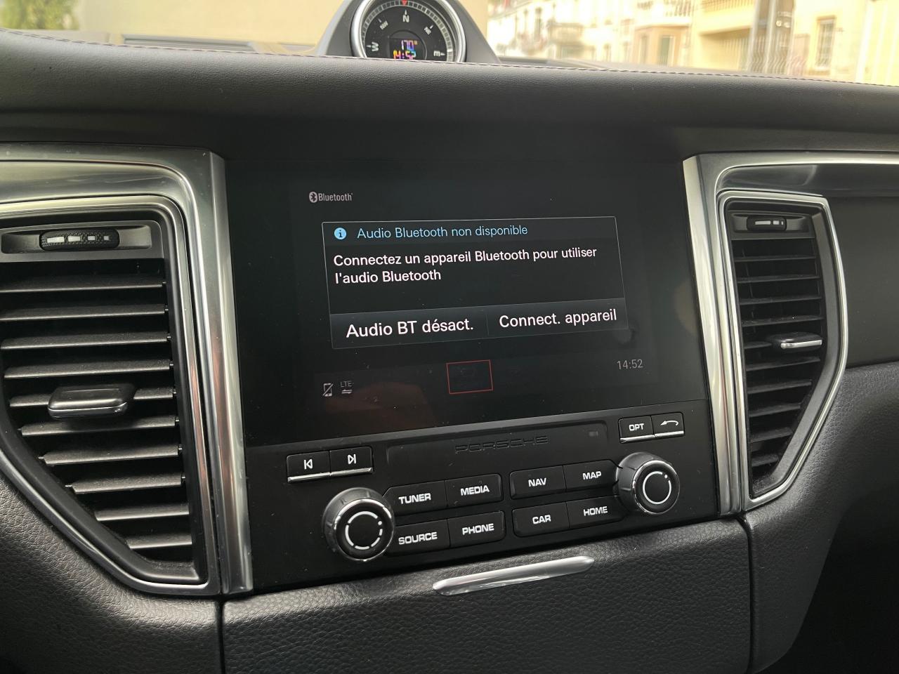 2 Porte-gobelets à l'avant, à diamètre variable2 ports USB de chargement dans la console centrale arrière3 instruments ronds intégrés dans le cockpit3 prises 12V5 places, banquette arrière avec 2 sièges latéraux confortables et une place centraleAccoudoir arrière central avec 2 porte-gobelets intégrésAccoudoir de la console centrale relevable et réglable longitudinalementAirbags grand volume pour le conducteur et le passagerAirbags latéraux avant intégrés aux siègesAirbags rideauxAllumage automatique des feux en cas d'ouverture/fermeture du véhiculeAppuie-têtes réglables dans 4 directionsAvertisseur de changement de voieBaguettes de parement de couleur ArgentBanquette arrière fractionnable (40/20/40), accoudoir central rabattableBecquet de toit peint couleur noir brillantBoîte Porsche Doppelkupplung (PDK) à 7 rapports, avec modes manuel en utilisant les palettes au volant ou mode automatique, affichage du passage optimal à la vitesse supérieure pour la consommation d'essenceCapacité du réservoir : 65 litresCapteur d'humiditéCeintures de sécurité 3 points automatiquesCeintures de sécurité avec prétensionneur (avant et arrière), limiteur d'effort de ceinture (avant), ceinture 3 points sur la place centrale arrièreCiel de toit en tissuClimatisation 3 zonesConcept d'éclairage de l'habitacle : Boite à gants, emplacement de la clef de contact, plafonniers avant et arrière, coffre.Contrôle de pression des pneus ( TPMS )Controle en descente (Porsche Hill Control PHC)Couleurs extérieur de base : Blanc, NoirCouleurs intérieur de base : Noir, Gris Quartz, Beige LuxorCouronne du volant en cuir lisseCouvre-bagages rigide amovibleDégivrage de lunette arrière avec arrêt automatiqueDeux sorties d'échappement simples couleur Argent mat à droite et à gaucheDisques à ventilation interne d’un diamètre de 345 mm à l’avant et 330 mm à l’arrièreEcran TFT couleur haute définition 4,8 pouces, affichage des rapports de la PDK, des intervalles de révision, de la température extérieure et des différents témoins d'alarmeEntourage des vitres latérales noir matEssuie-glace arrière avec réglage de l'intermittence et buse de lave-glaceEssuie-glace avant à 2 vitesses de balayage et intermittence variable, capteur de pluie, et buses de lave-glace chauffantesEtriers de frein noirFermeture centralisée des portes à télécommandeFeux antibrouillard, intégrés au bouclier avantFeux arrière à DEL avec feux stop adaptatifsFeux avant avec feux de position et clignotants à DELFeux de jour halogènesFiltres à particules et à pollen avec filtre à charbon actifFonction Auto-HoldFonction Start/StopFrein de parking électriqueFrein multi-collisionFreins à étriers fixes monoblocs en aluminium à 4 pistons à l’avantFreins à étriers flottants à l’arrièreGestion thermiqueHayon automatiqueInstruments ronds avec compte-tours cerclé de NoirIntérieur de série en teinte de série, cuir synthétique / AlcantaraJantes Macan 18 poucesKit de réparation pneumatique avec compresseur électriqueLève-vitres électriques avant et arrière, avec fonctions confort, anti-pincement, et abaissement séquentielLimiteur de vitesseLubrification à carter humideMode CroisièreOrdinateur de bordPack intérieur NoirPack non-fumeurParechoc avant avec entrées d'air intégréesPatères intégrés sur les piliers B côté conducteur et passagerPhares principaux de type projecteurs avec réglage statique automatique de la portée d'éclairagePorsche Communication Management (PCM) avec pré-équipement pour téléphone portable et interface audioPorsche Traction Management (PTM) : transmission intégrale dynamique avec différentiel central multidisque électronique, différentiel de freinage automatique (ABD), système de régulation antipatinage (ASR)Pré-équipement attelageProtecteur de seuil de coffre aluminiumRange-bouteille dans les contre-portes avant et arrièreRangements dans l'habitacleRégulateur de vitesseRenvois de ceinture des sièges avant et arrière latéraux réglables manuellement en hauteurRétroviseurs extérieurs chauffants, réglables et repliables électriquement (peut être fait à partir de la clef), de forme asphérique côté conducteurSidesblades peints en noir LaveSiège conducteur réglable éléctriquement dans 8 directions, siège avant passager réglage manuellement dans 6 directionsSièges confortSignature "PORSCHE" avec monogramme arrière chroméSound Package Plus, 10 haut-parleurs d’une puissance totale de 150 watts avec amplificateur intégré et traitement numérique des signauxSuspension à ressorts en acierSystème "Rollover" (détection de tonneaux) : déclenche les airbags rideaux et les prétensionneurs de ceintureSystème antichocs avec traverses haute résistance et deux éléments de déformation, avec taraudages déstinés au vissage de l'anneau de remorquage de l'équipement de bordSystème antidémarrage, système antivol avec surveillance de l'habitacle par ultrasonsSystème de désactivation de l'airbag passager avant pour montage d'un siège enfant ( avec témoin lumineux au tableau de bord)Système de récupération de l'énergieSystème de recyclage d'airSystème de stabilisation Porsche Stability Management (PSM) avec ABS, régulation du couple moteur (MSR), système antipatinage (ASR), différentiel de freinage automatique (ABD), assistance au freinage,Système ISOFIX de fixation de sièges enfant sur le siège passager et les sièges arrière latérauxTémoin d'oubli des ceintures AV et ARTouche AC MAXTouche Offroad de programme de conduite tout-terrainTouche SPORTTroisième feu stop (DEL), intégré au becquet arrièreTurbocompresseurVarioCam avec callage de l'arbre à camesVitres athermiques teintéesVolant Multifonction avec palettes de passage des rapportsVolet actif de radiateur
