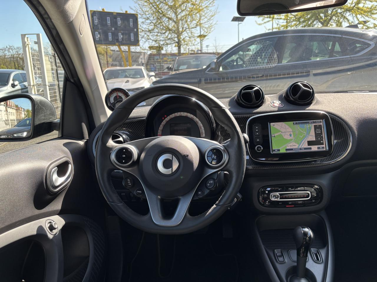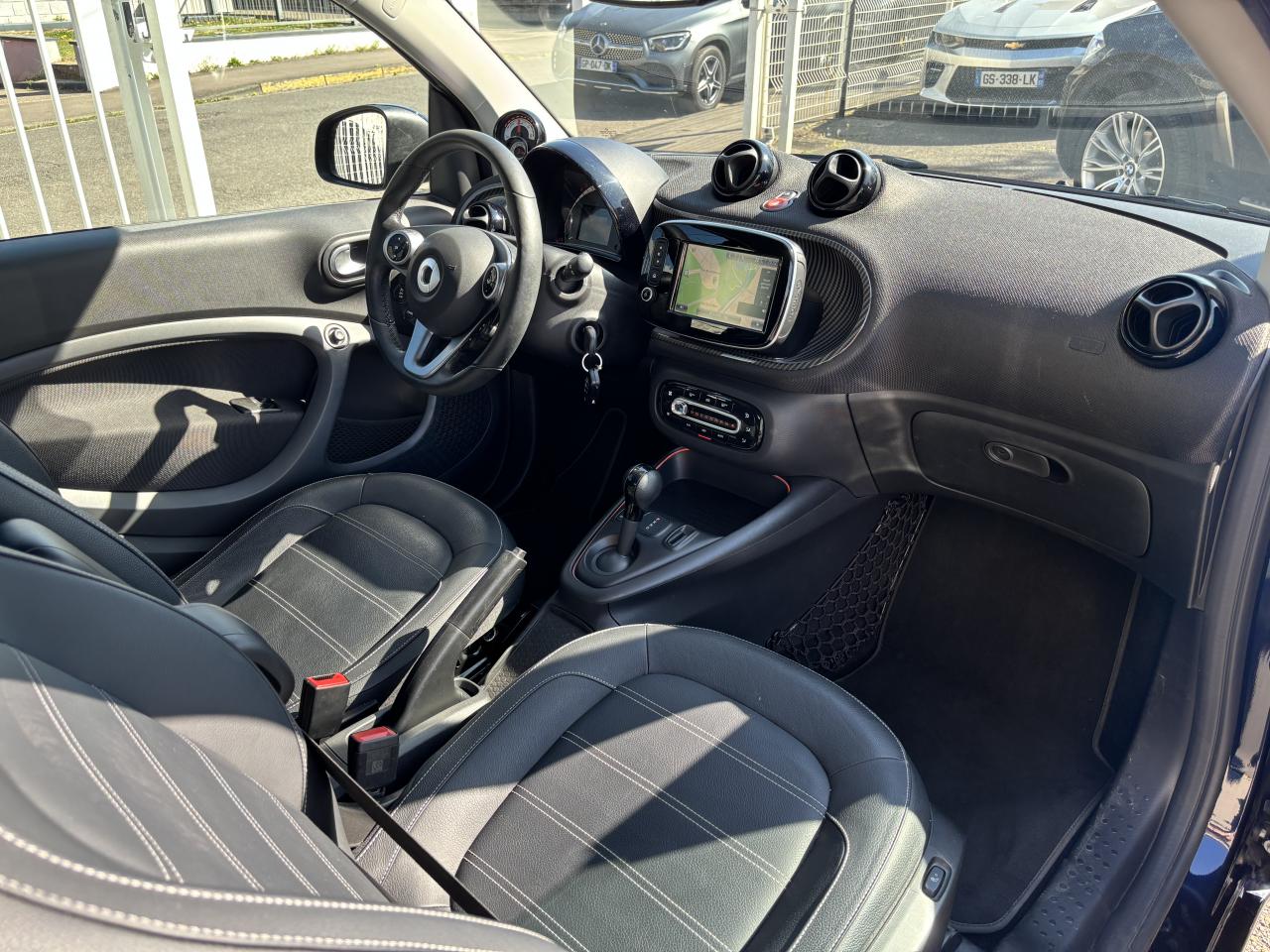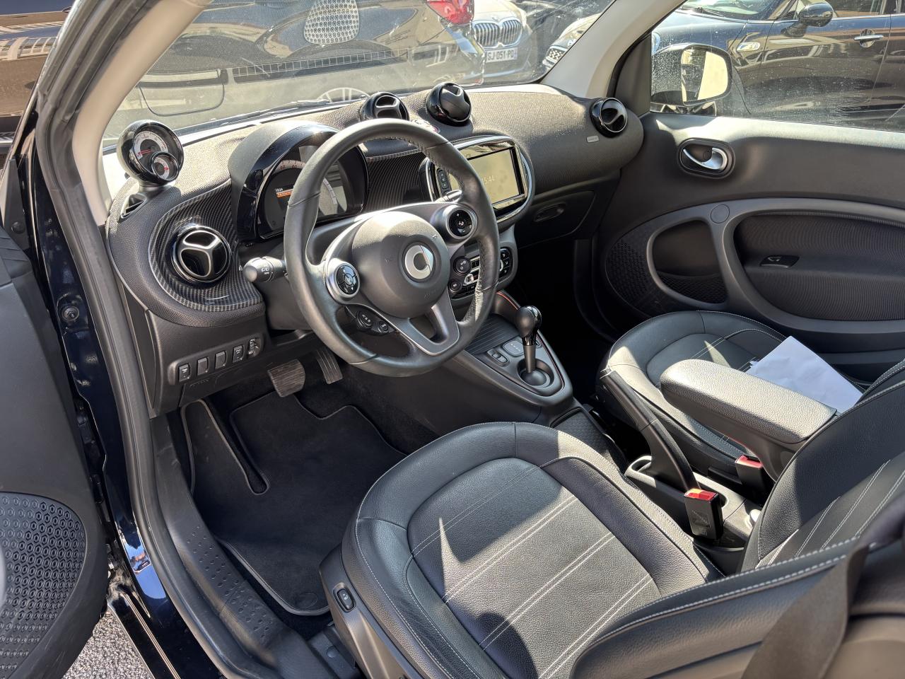 2 ports USB de type A, 1 connexion AUXAccoudoir central avant rabattableAffichage de la température extérieure, avertisseur de verglasAide au démarrage en côteAide au stationnement arrière avec alerte sonore (trois capteurs à ultrasons situés à l'arrière)Airbag genoux conducteurAirbags latéraux tête-thorax pour conducteur et passager avantAirbags pour conducteur et passager avant avec désactivation d'airbag passager avantAntenne de toitAvertisseur d'oubli de ceintures de sécurité conducteur et passagerAvertisseur sonore pour piétonsBoîte à gants verrouillableBoîte de vitesses automatique à 1 rapportCache de maintenance verrouillable (sous le châssis)Cache-bagages à enrouleur (avec filet de rangement)Caméra de reculCapteur de collision activant les feux de détresseCeintures de sécurité 3 points avec prétensionneurs et limiteurs d'effortCellule de sécurité tridion noirChargeur embarqué de 4,6 kWClé pliante à trois touches permettant de verrouiller/déverrouiller les portes et le hayon, deuxième clé à panneton fixeClignotants à commande confort par impulsionsClignotants latéraux blancsColonne de direction réglable en hauteurCombiné d'instruments avec visuel TFT couleur de 8,9 cm (3,5") et ordinateur de bordCompartiment de rangement dans le hayon arrièreCompartiment de rangement dans les portes avantConsole centrale avec cache coulissant, vide-poches et double porte-gobeletsContrôle de pression des pneus ( TPMS )Coques de rétroviseurs extérieurs dans le coloris de la cellule de sécurité tridionCorrecteur de portée des phares (commande manuelle)Direction assistée électriqueDossiers des sièges conducteur et passager avant réglables d’un seul gesteDrive lock - système automatique de fermeture des portes au démarrageEclairage d'ambianceEclairage du coffreEclairage intérieurESP - régulation de comportement dynamiqueEssuie-glace arrière à cadencement et fonction de lavage/balayage automatiqueEssuie-glace confort à cadencement et fonction de lavage/balayage automatiqueFilet de rangement sur la console centrale côté passagerFixations de siège enfant i-Size sur le siège passager avant avec désactivation manuelle de l'airbagFreinage d'urgence assisté actifGarnitures en cuir noir avec surpiqûres grises, planche de bord et partie centrale des contre-portes en tissu noir et pièces personnalisées en noirGrille de calandre couleur carrosserieHaut-parleurs, à l'avantInstrument complémentaire avec affichage de la puissance et du niveau de charge de la batterieIntégration smartphoneJantes en alliage léger 41 cm (16") à 8 branches en Y, finition noir/naturel brillant avec pneus avant 185/50 R16 et arrière 205/45 R16Kit de dépannage : compresseur 12 volts et produit d'étanchéité de pneuLève-vitres électrique à commande confort et protection antipincementLunette arrière dégivranteMiroirs de courtoisie à l'avantPack de câbles de rechargePanneaux de carrosserie noir non métalliséPare-soleil avec porte-ticketPhares LED intégraux hautes performances avec projecteurs antibrouillardPneus étéPoches aumônières au dos des sièges conducteur et passager avantPochette pour câbles de chargePoignées de portes intérieures d'aspect chromé matPoignées de portes intérieures noiresPommeau de levier de vitesses cuir noirPrise 12 volts avec cachePush to talk : active la reconnaissance vocale du smartphoneRainsensor (Capteur de pluie et de luminosité)Réception radio numérique : réception des signaux DAB, DAB+ et DMB audioRégulateur et limiteur de vitesseRétroviseur extérieur à miroir bombé asphérique du côté conducteurRétroviseur intérieur électrochromeRétroviseurs extérieurs électriques et dégivrantsSangle pour la fixation d’objet sur le siège passagerSiège conducteur réglable en hauteurSiège passager avec fonction de chargement en longueur (dossier entièrement rabattable)Sièges avant chauffantsSmart EQ control (3 ans d'abonnement inclus à compter de l'activation)Spots de lecture AVSystème antiblocage des roues (abs) avec répartiteur électronique de freinageSystème Bluetooth (téléphone et musique)Système de stabilisation en cas de vent latéralSystème multimédia smart avec visuel Multi-Touch de 20,2 cm (8")Tapis de sol en velours noirToit panoramique avec pare-soleilTriangle de présignalisation avec kit de premiers secoursTroisième feu de stop à LEDVerrouillage centralisé avec télécommande radio, témoin optique de fermeture et antidémarrageVolant multifonction à 3 branches en cuir, avec barrette dans le ton anthracite et surpiqûres grises