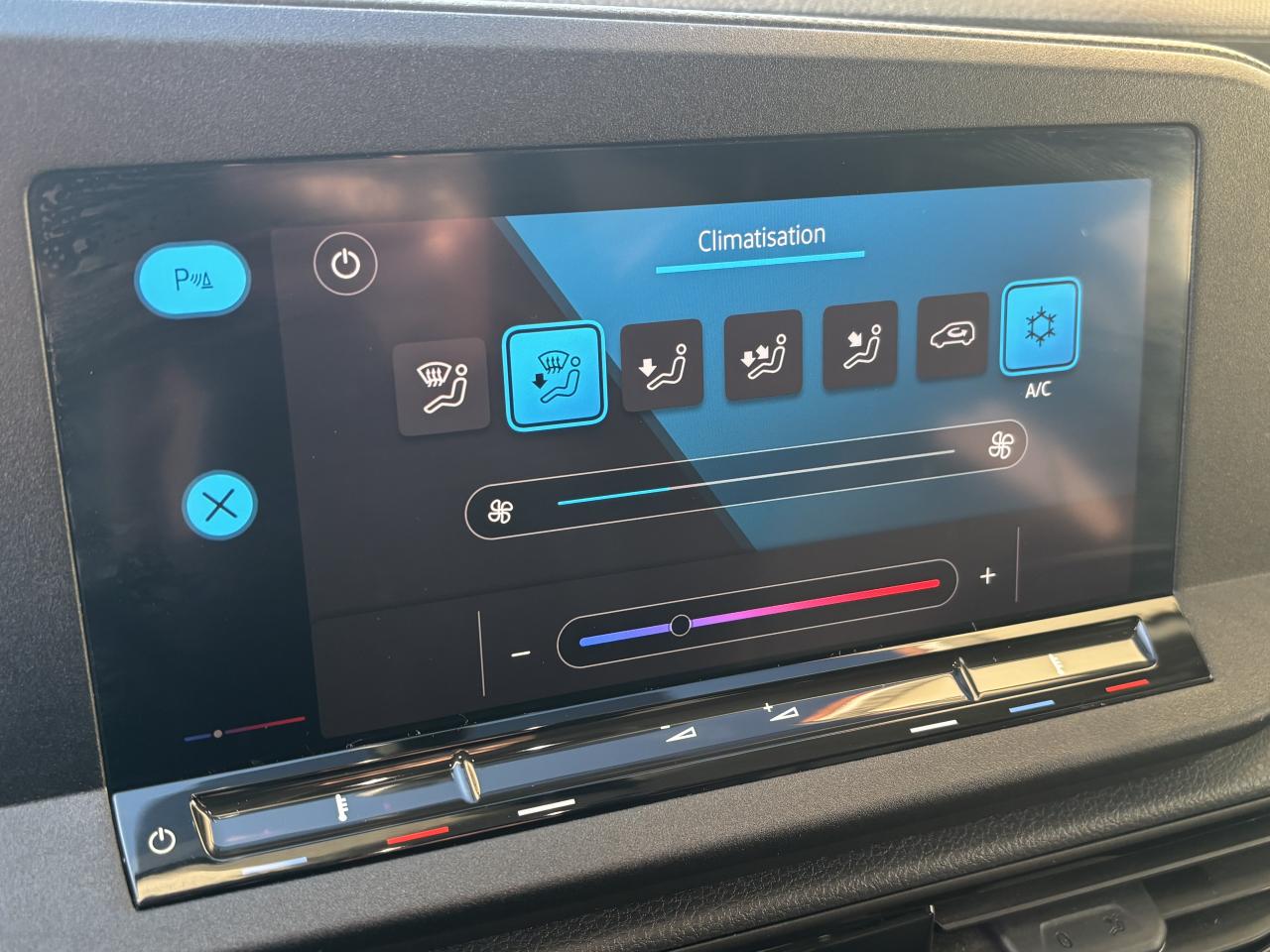 2 clés pliantes radiocommandées2 porte-boissons dans la console centrale2 spots LED dans compartiment de charge4 jantes en acier 6,5J x 16, en NoirAccoudoir siège conducteurAffichage de la périodicité d'entretien 30 000 km ou 2 ansAirbags pour conducteur et passager avec désactivation de l'airbag passagerAllumage automatique des projecteursAnti-démarrage électroniqueApp-Connect sans filAppel d'urgence - EcallAutoradio “Composition” avec écran tactile couleur 8,25“ + 4 haut-parleurs + Dab + 2 connexions USB (type C) dans la console centrale, à l’avantBoite à gants éclairée avec fermeture à clefBoitiers de rétroviseurs extérieurs et poignées en Noir, rail de porte coulissante en ArgentCeintures de sécurité trois points automatiques à l’avant, avec réglage en hauteur des ceintures et rétracteur de ceinture électriquesClimatisation ‘Climatic'Cloison de séparation haute sans fenêtreCloison de séparation haute sans fenêtre, sans rétroviseur intérieur de sécuritéCombiné d’instruments (km/h) ; indicateur vitesse, compteur total./journalier, régime, niveau carburant et heureDiffuseurs d’air, en Noir Mat à l’avantEnjoliveurs pleinsFeux de jourFonctionnement intermittent des essuie-glaceFrein à main électrique avec Hill assistFreins à disques 16” à l'arrièreGalerie de toit dans la cabine (bac vide-poches dans le ciel de pavillon avec 2 poignées dans la cabine)Garniture de plancher en moquette dans la cabineGarnitures de siège en tissu, dessin «Double Grid»Interface pour téléphone portableLève-vitres avant électriquesNormes anti-pollution Euro 6d-ISC-FCMPack Aide à la conduite City DrivePalettes au volantPare-Brise feuilleté AthermiquePare-chocs - grisPare-soleil sans miroir avec pochette pour ticket côté passager avant, plus étiquette airbag sur pare-soleilPeintures extérieures uniesPneus 205/60 R16 96H XL à résistance au roulement optimiséePommeau de levier de vitesses en cuirPorte latérale droite coulissante tôléePortes arrières battantes tôlées asymétriquesPréparation pour barres de toit/galerie porte-bagagesPréparation We Connect et We Connect PlusProjecteurs doubles halogèneRéglage du site des pharesRéglage en hauteur manuel du siège conducteurRégulateur et limiteur de vitesseRétroviseurs extérieurs réglables électriquementRevêtement de porte et accoudoir en plastiqueRevêtement latéral standard dans le compartiment de chargeRevêtement plancher caoutchouc dans l'espace de chargementServotronic : direction assistée asservie à la vitesseSignal sonore et lumineux pour ceinture du conducteur non attachéeSystème Start/ Stop avec récupération d'énergie de freinageTableau de bord finition noir matVerrouillage centralisé avec deux radiocommandes et commande d’ouverture intérieure de porteVersion non fumeurVolant gainé cuir